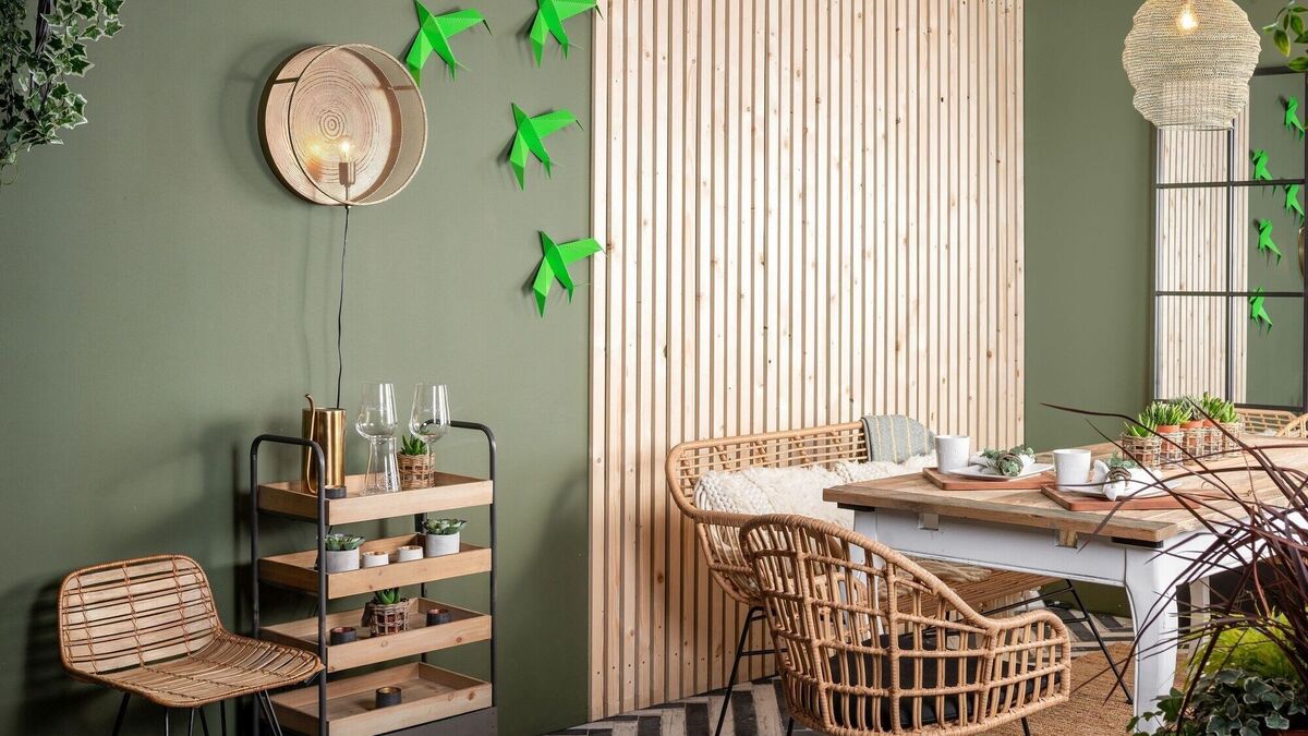 Colour, natural materials, plantlife and a feeling of bringing the natural environment into the home are trending in 2022 (Sweet Caper wall paint by Colourtrend, €33 p/ltr).