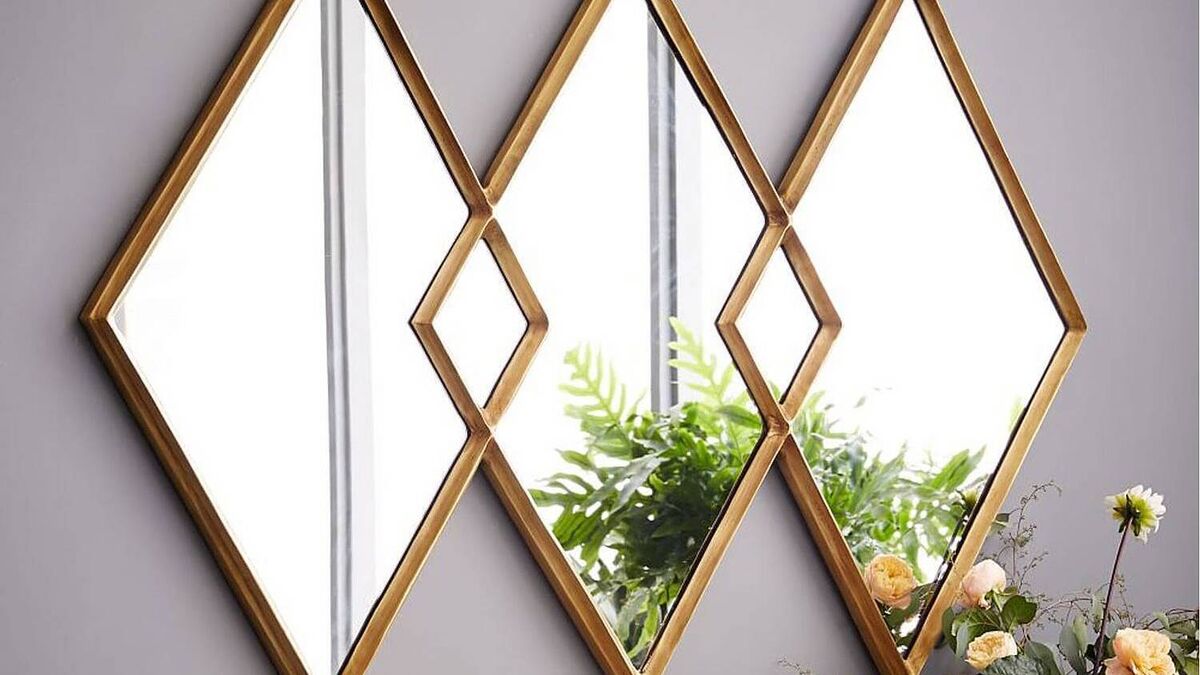We're in love with this overlapping golden diamond mirror from West Elm, €579, above.Â