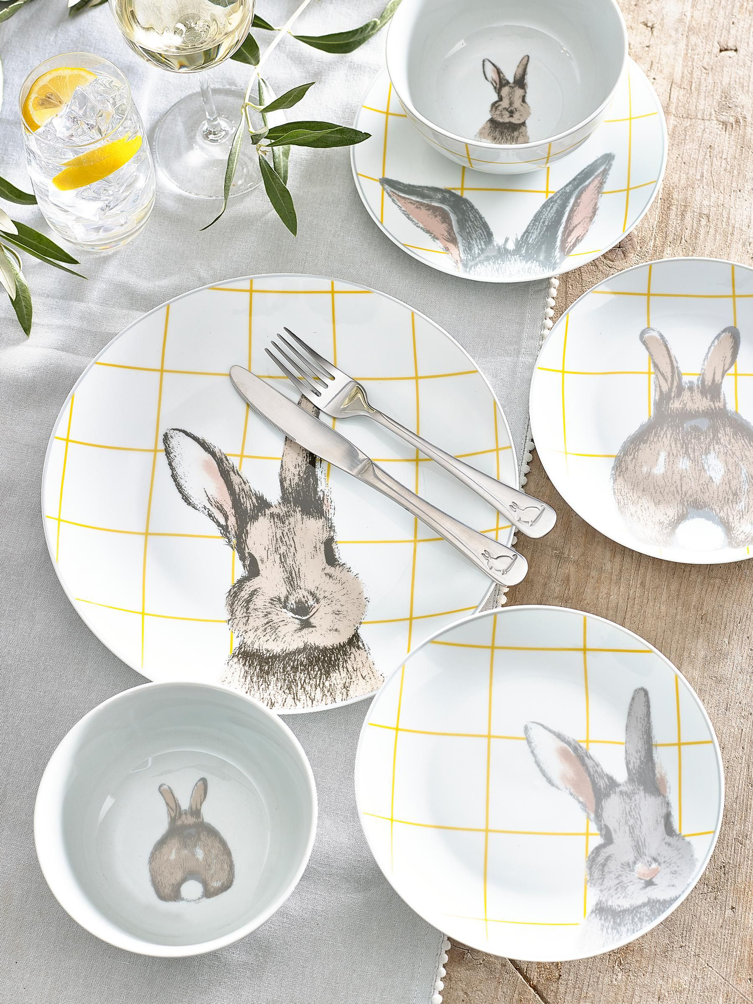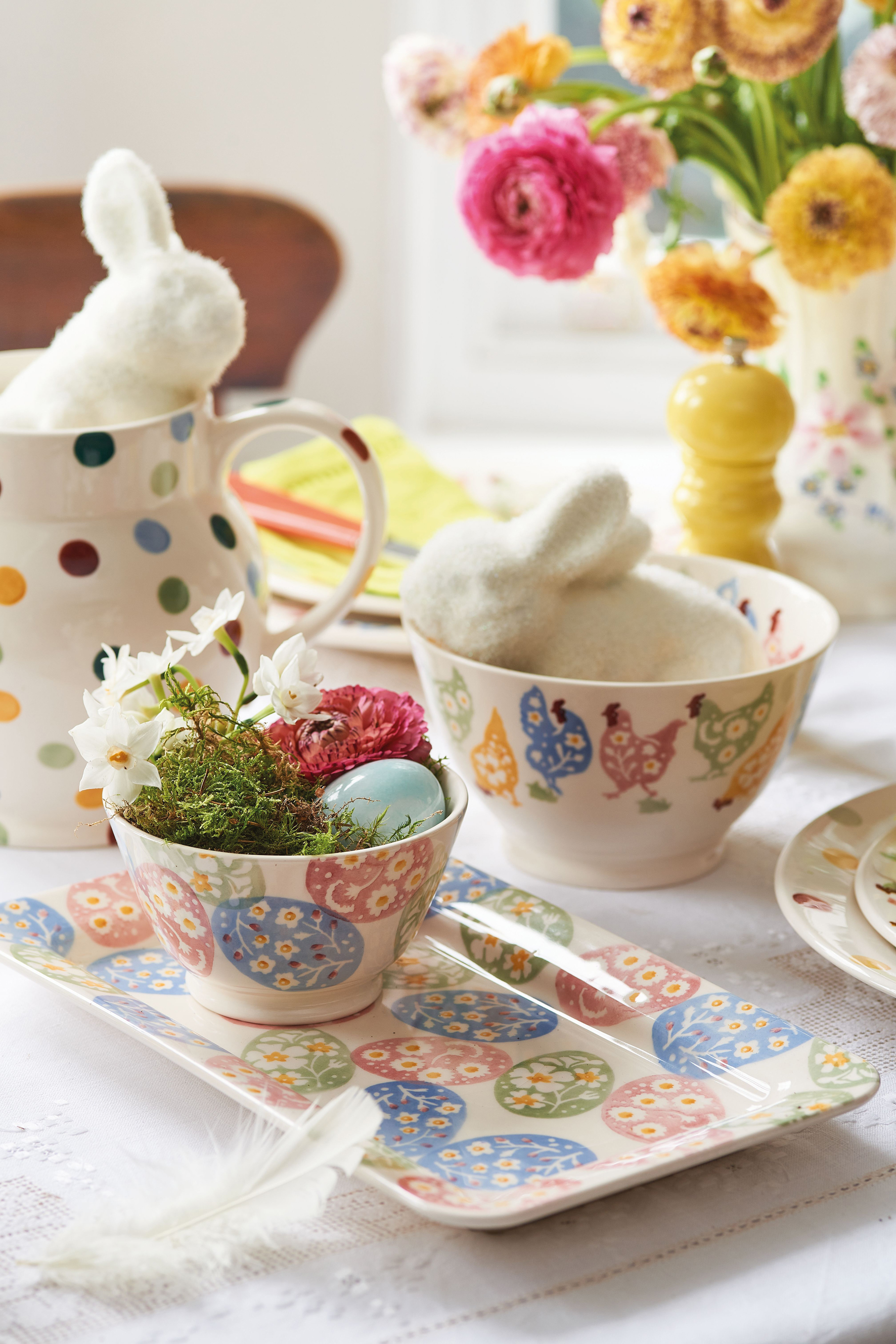 Springtime signals cute chicks, adorable bunnies, bright blooms, beams of bright yellows, fresh greens, pastel hues and joyful tableware to match the sunny mood.