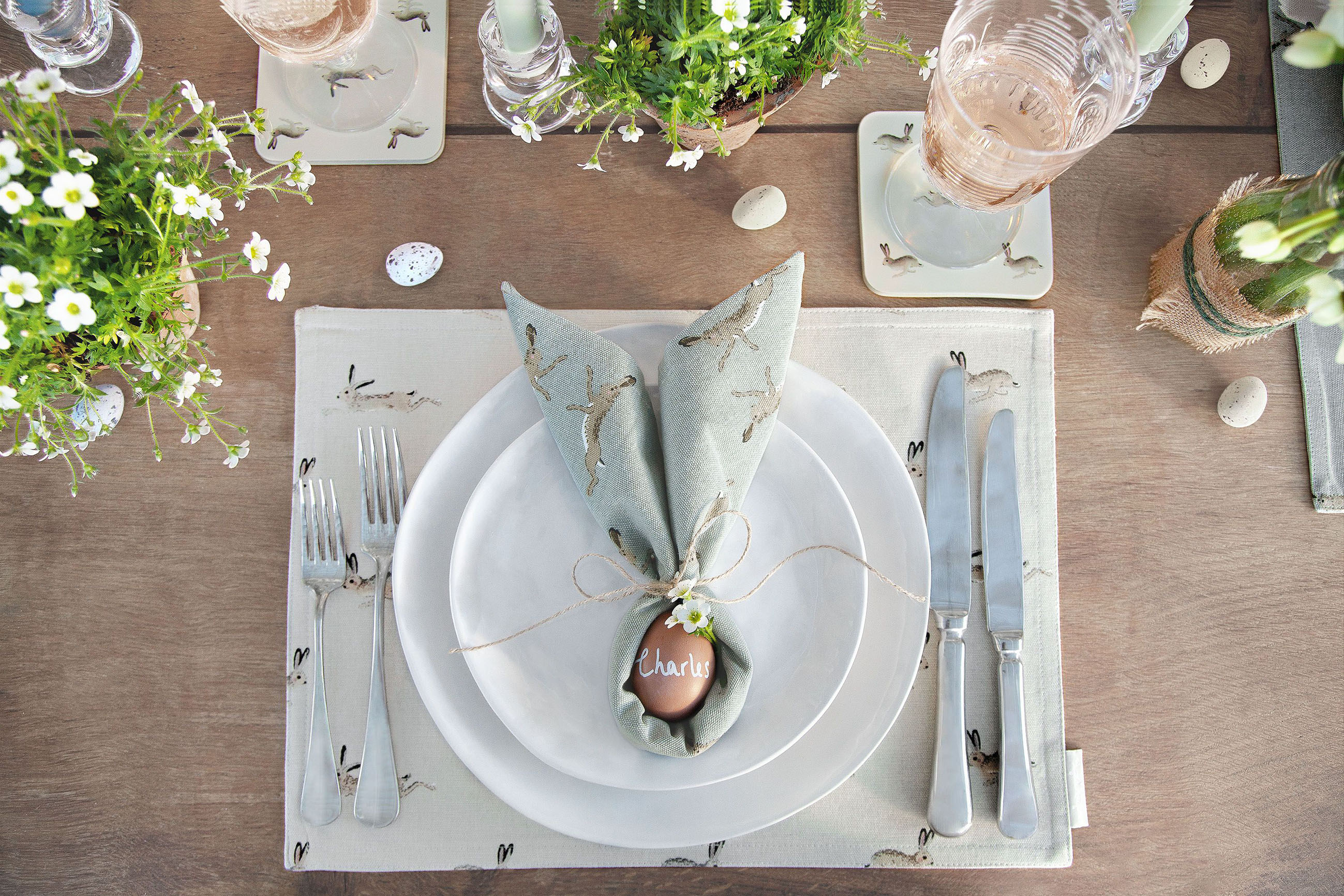 “You can experiment with sea grass table mats,” says Fortescue, “Or use pebbles or shells found on the beach throughout the year to add family memories onto your Easter table.”
