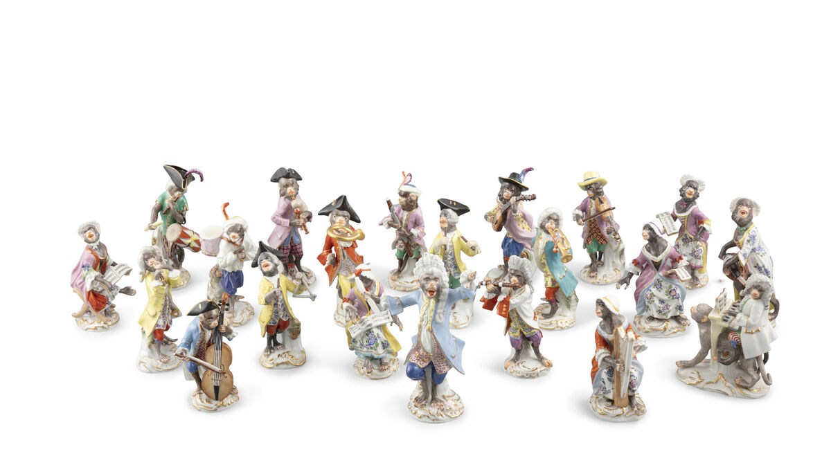 A Meissen monkey orchestra at Adam's Library Collection sale.