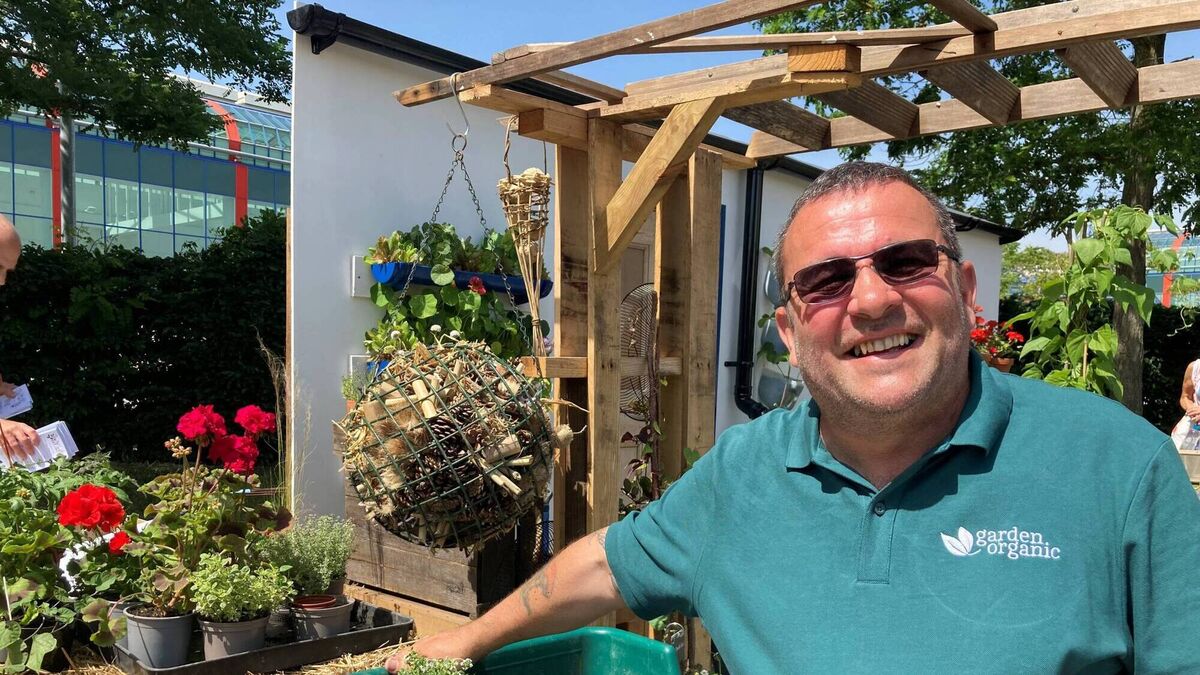 Chris Collins at Garden Organic's Small Space Big Ideas show garden. Pictures: Hannah Stephenson/PA