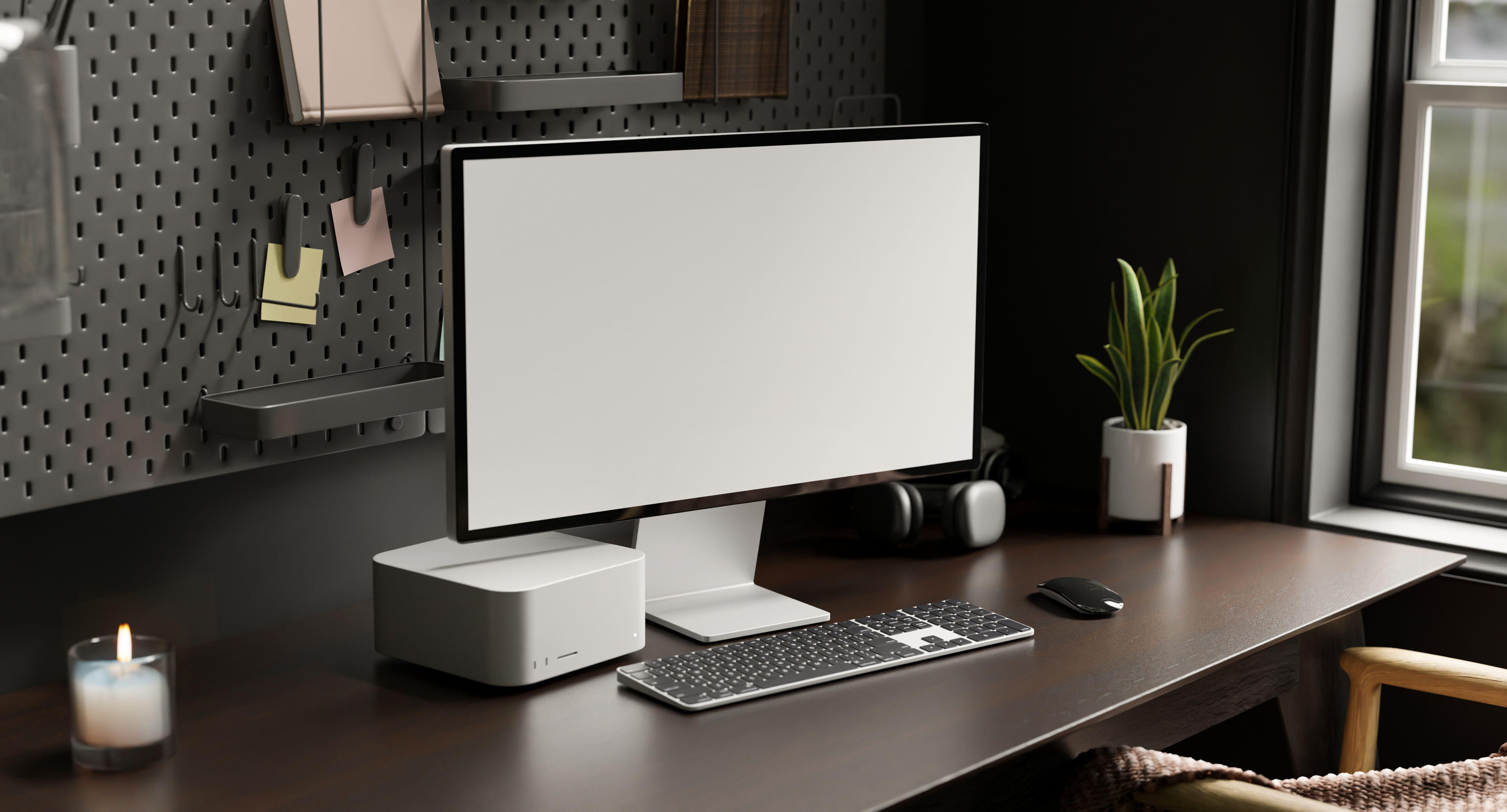 As well as using the Samsung M8 Smart Monitor to work, watch TV and exercise, she recommends utilising your vertical space with a peg board for paperwork, cleverly built-in shelves around a doorframe, and having a caddy which neatly holds things and can be tucked away at the end of the day â products which are multifunctional and space saving.