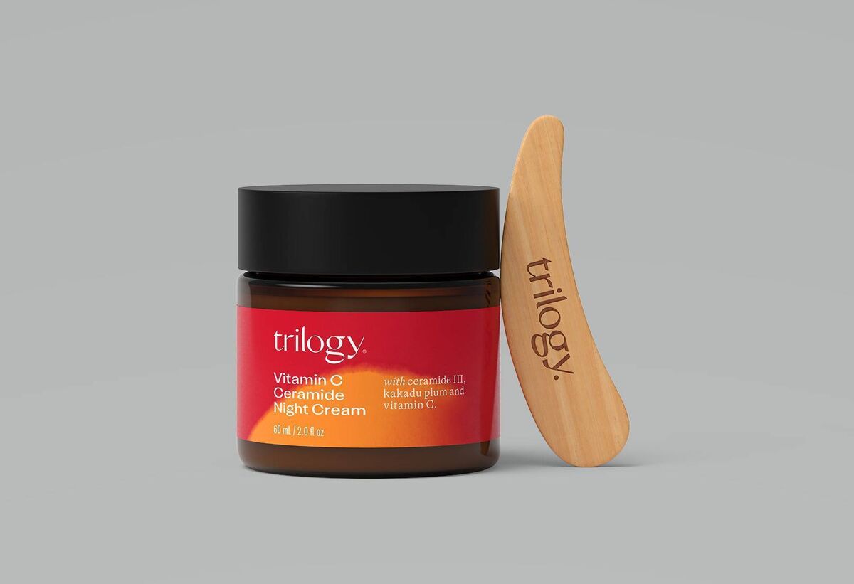 It’s advisable to apply Vitamin C at night, add the cream’s makers, and the ceramides used in this formula are plant-based skin-identical lipids designed to boost skin hydration. Hyaluronic acid is also on the ingredient list, as is Kakadu plum. It’s available nationwide and at trilogy.com.
