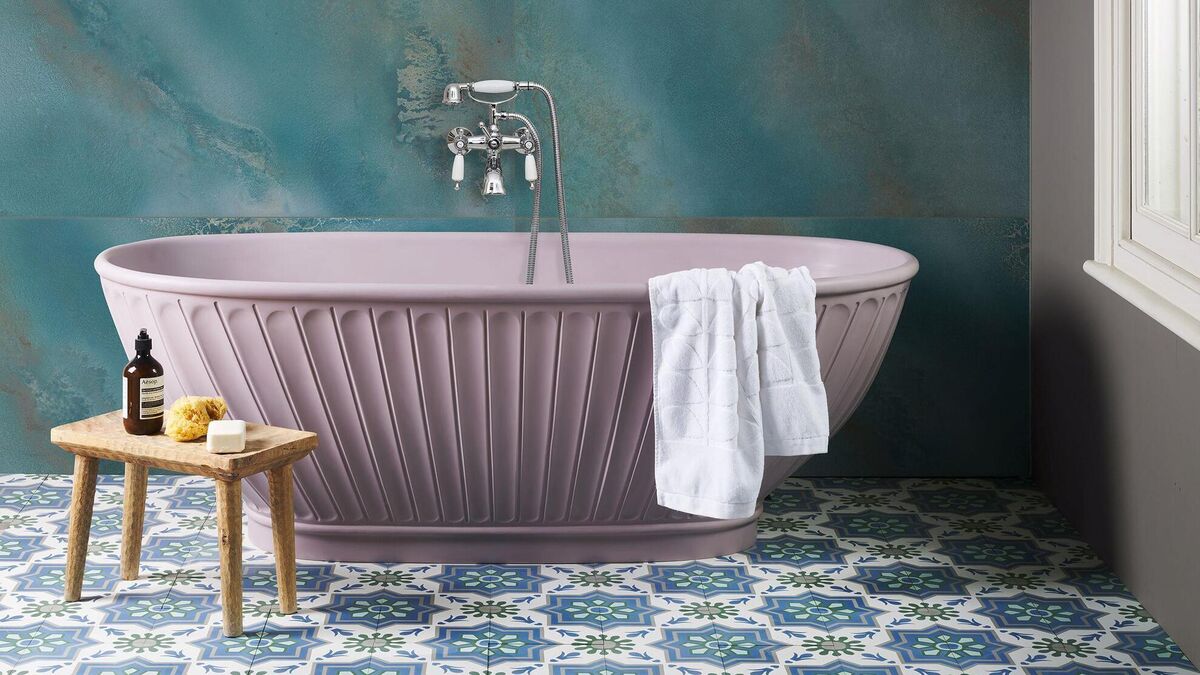 These large-scale beauties have elements of sandy hues and white sea foam patterns that can work as floor tiles, too, in the bathroom to complete the sense of escapism; €162.65 per pair at tiles.ie.