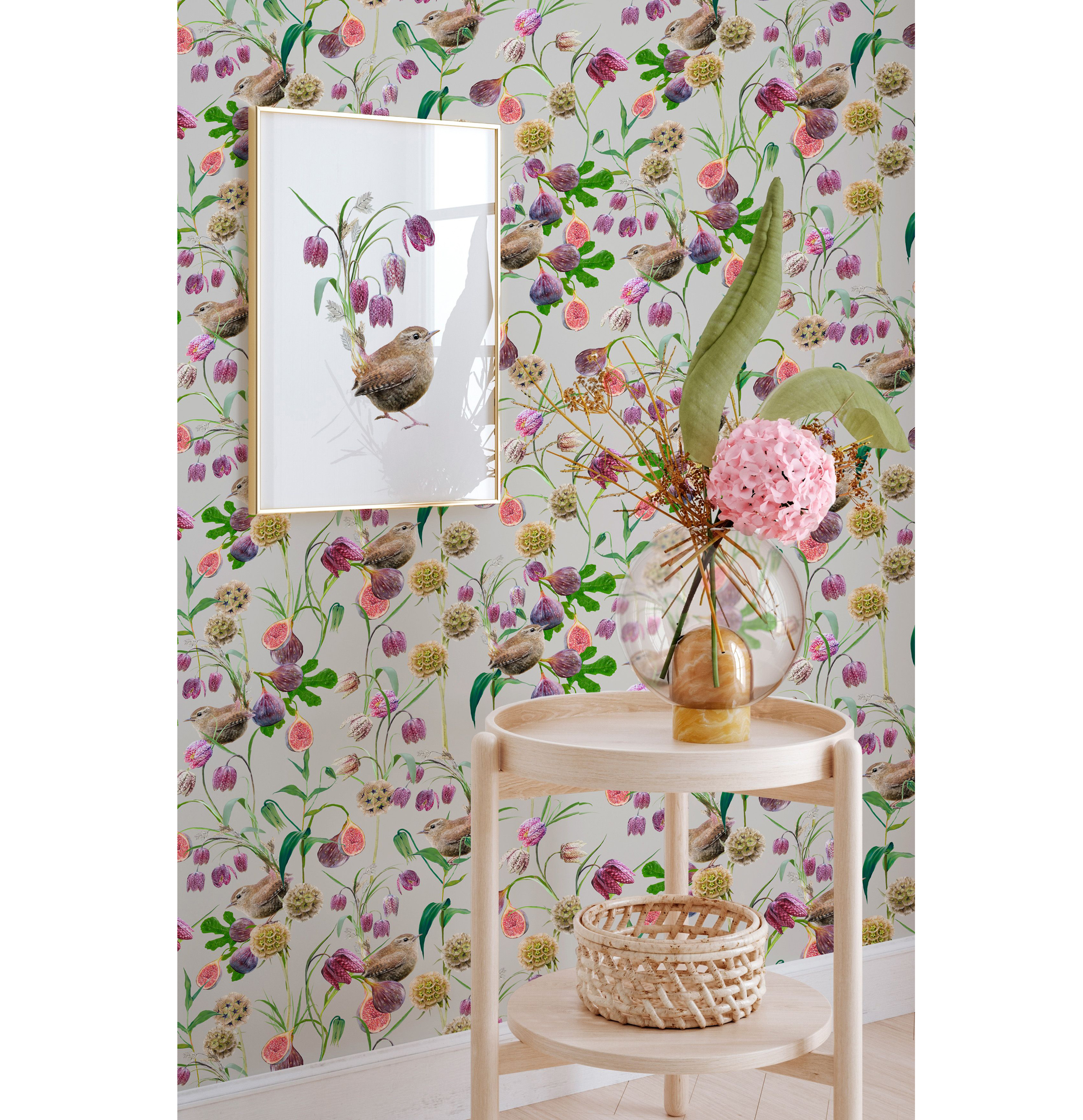 5. Botanical Wren Wallpaper By Lola Design – French Grey, Lola Design