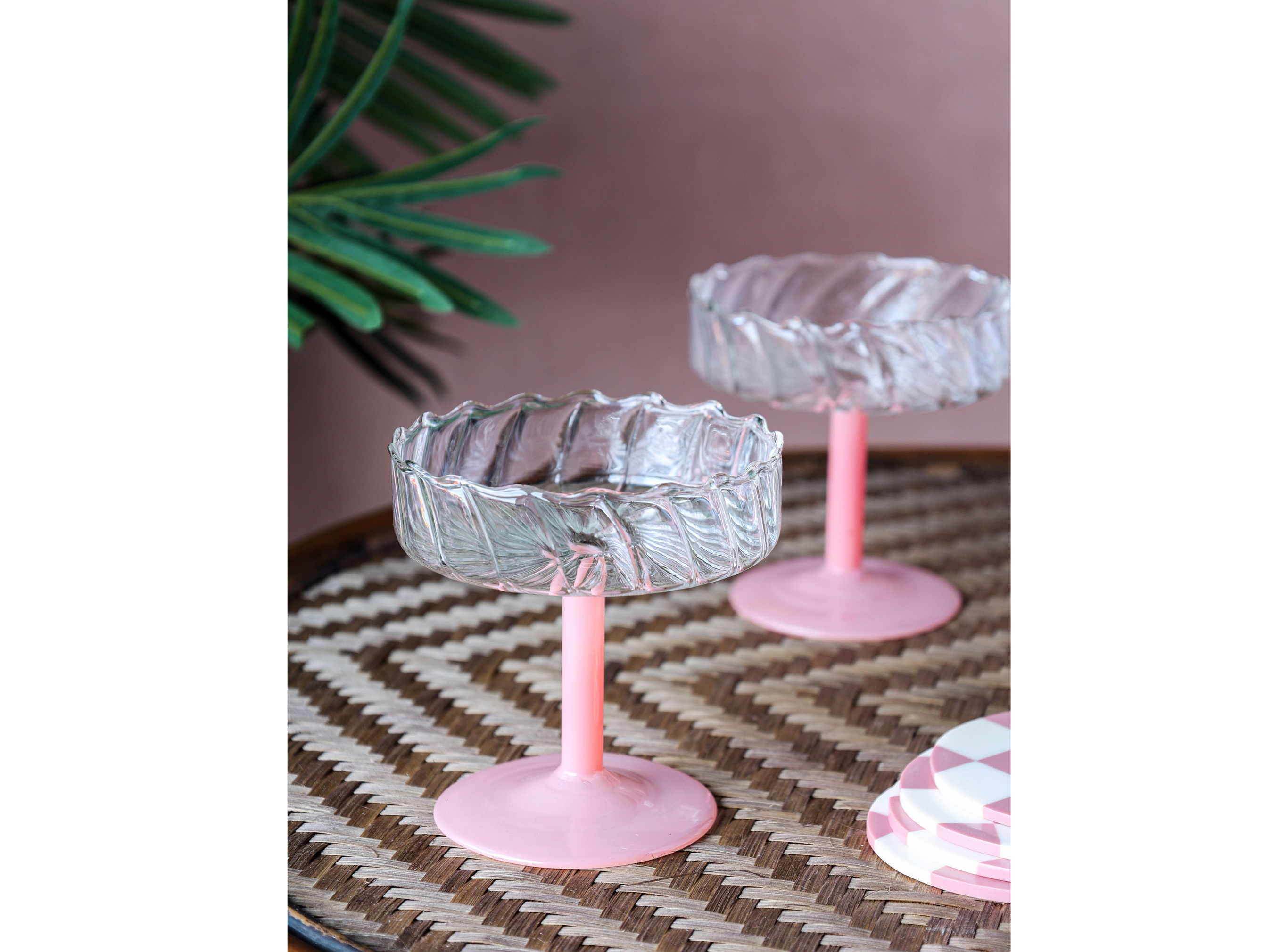 7. Set of 2 Pink Twirl Coupe Glasses, Rockett St George