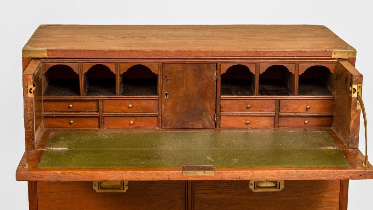 A late 19th-century Irish elm brassbound military chest at Fonsie Mealy's sale at Borleagh Manor.