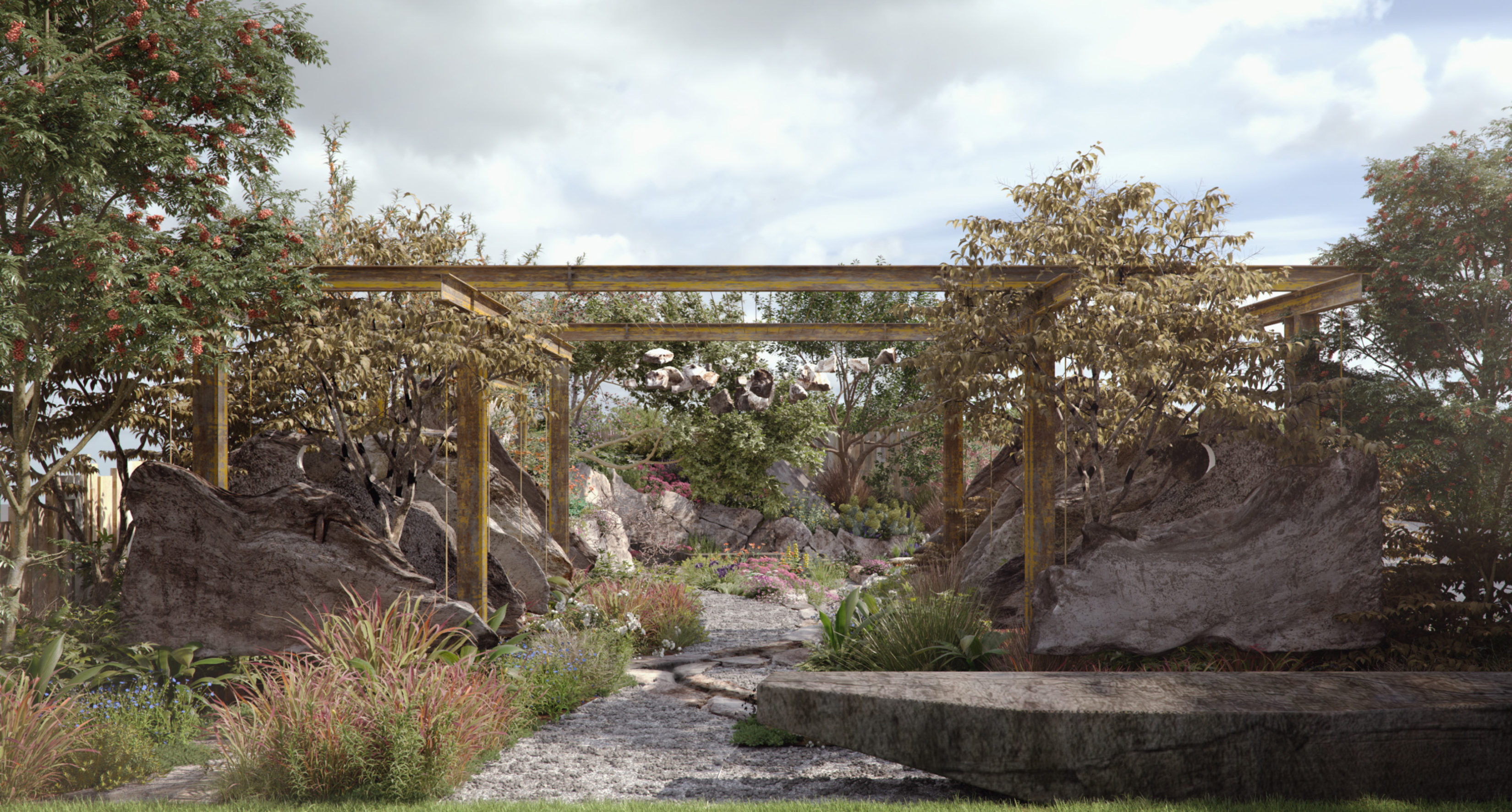 The result will be a garden of salvaged concrete and steel transformed into a beautiful space.