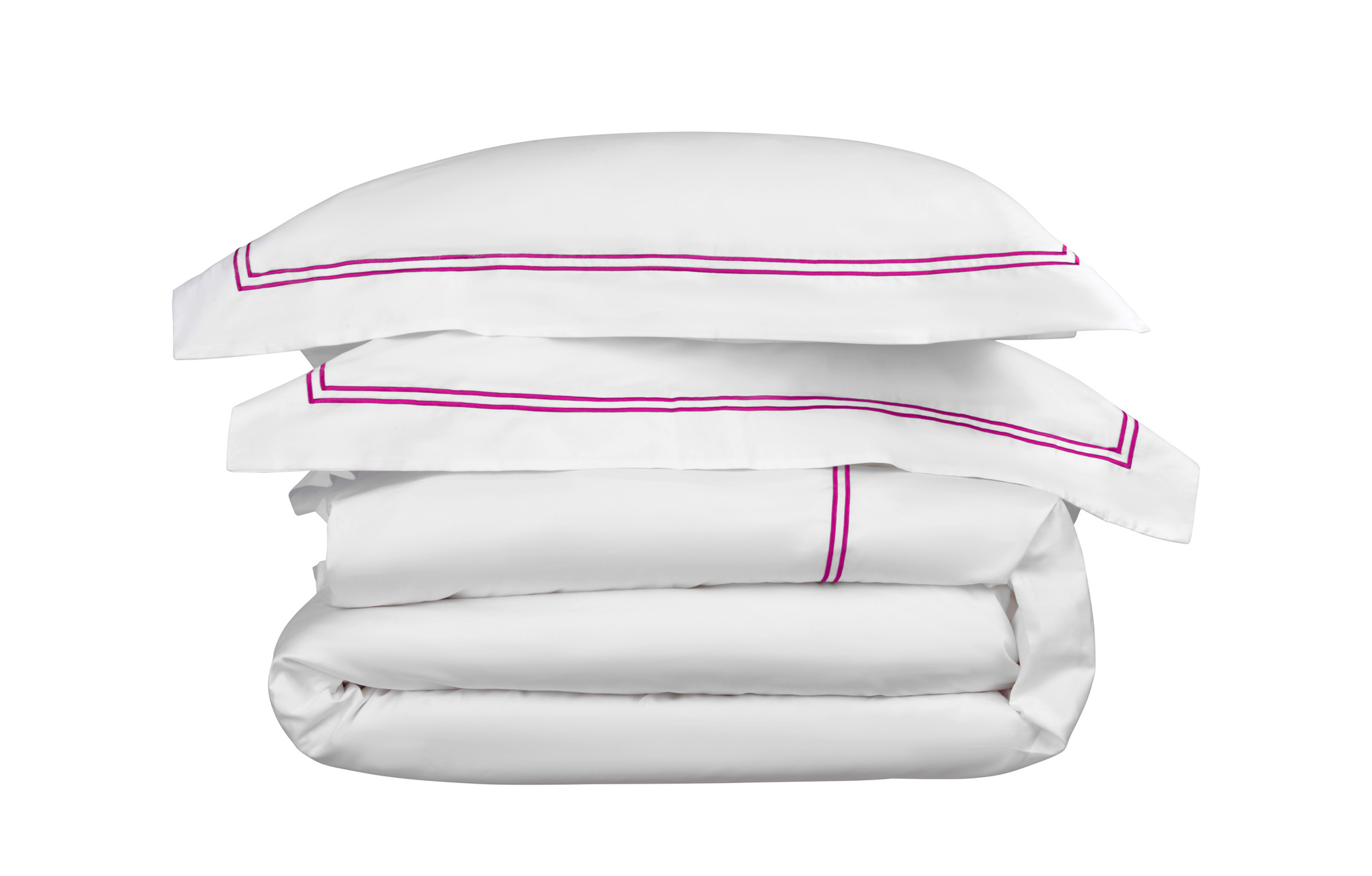 The ideal thread count for hot summer nights, this lightweight bed linen with stylish satin stitch in fuchsia is a timeless staple to encourage the sweetest dreams. Spritz with rose water to set your mind at rest.