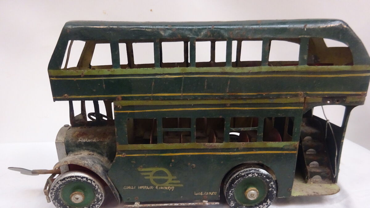 A large Irish Georgian brass banded turf bucket, a watercolour drawing of Fisher's Quay, Youghal by Norah McGuinness and an early Georgian walnut chest on chest are among the top lots at Lynes and Lynes sale in Carrigtwohill on this day week (September 23). With everything from a rare pair of Victorian brass and leaded hall lanterns to an old metal CIE clockwork model double decker bus in need of attention this is a sale with something for everyone.