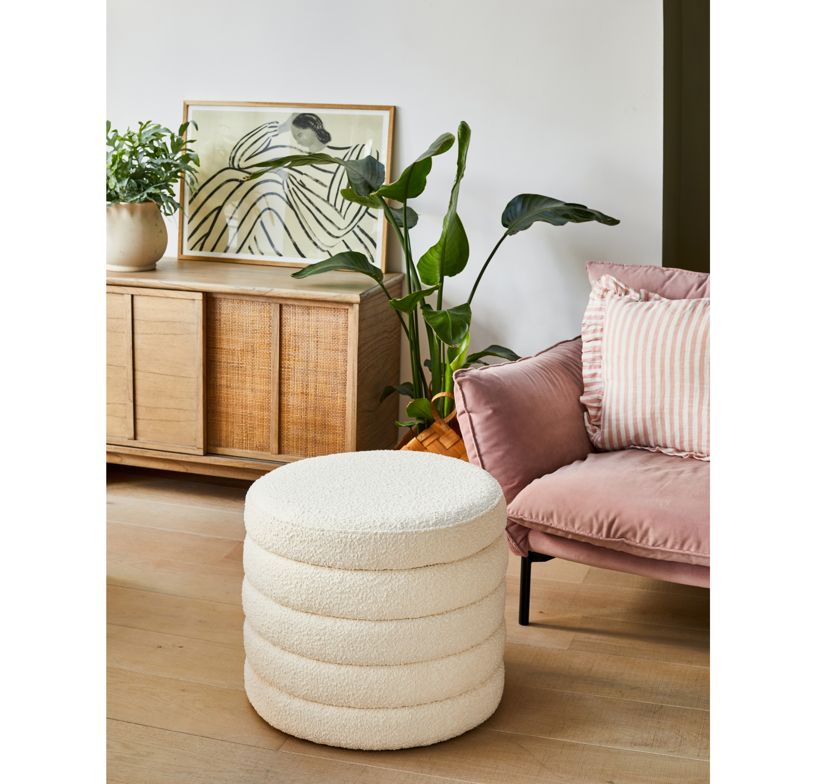 To help keep your room tidy and items out of sight, she suggests investing in items that have a dual purpose, such as storage stools that double up as side tables, or sideboards that can display the “things you love,” and help create a more spacious living area.