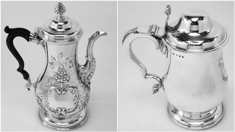 Shine on: 18th-century silver coffee pot from Cork and Dublin tankard