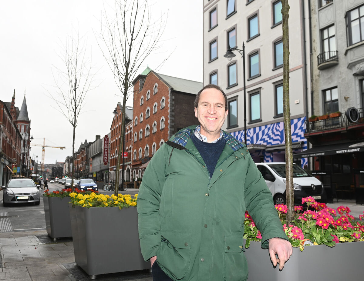 Irish Examiner garden columnist Peter Dowdall near the newly planted trees on MacCurtain Street, Cork. Pictures: Eddie O'Hare