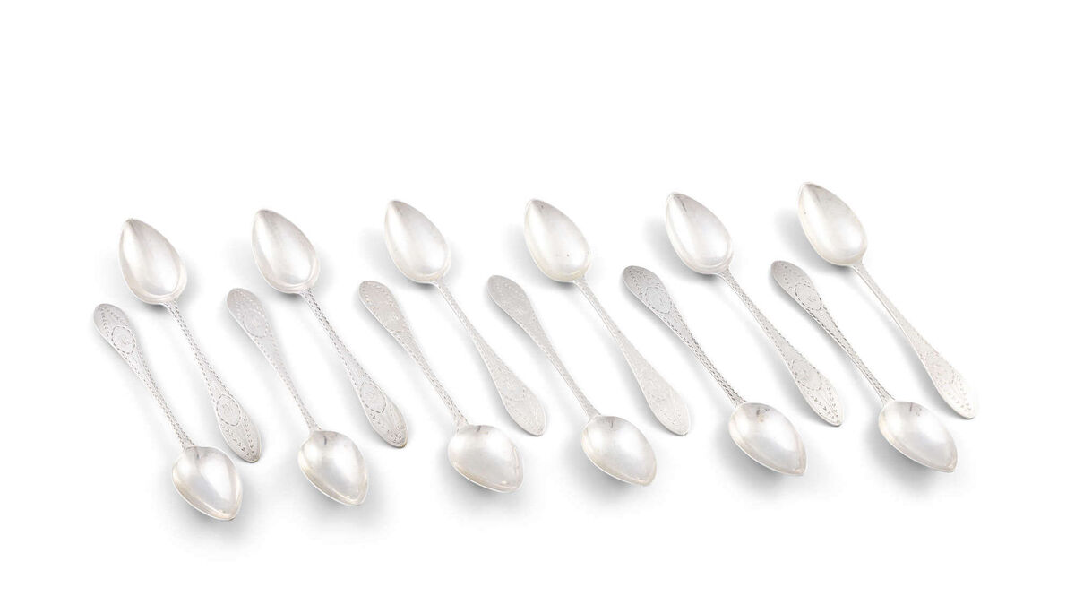 A set of 12 c1780 teaspoons by Patrick Connell, Limerick, at James Adam.