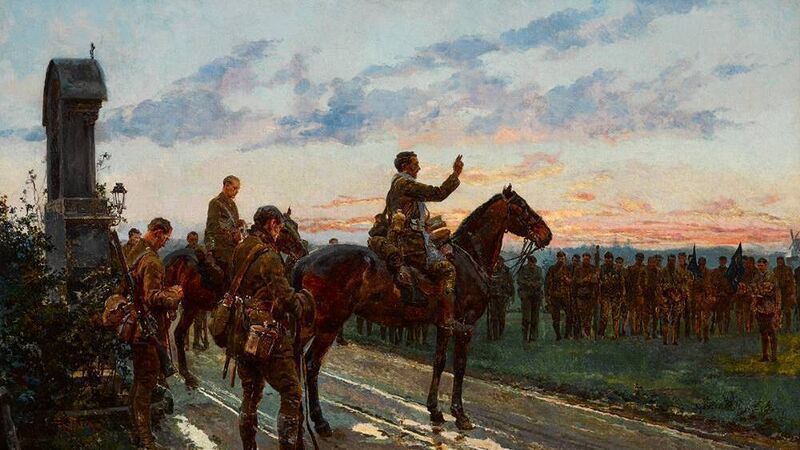 A unique extant painting of the poignant scene by Fortunino Matania (1881-1963), the Italian artist noted for his realistic portrayal of trench warfare, comes up as lot 116 at Whyte's sale of Important Irish Art in Dublin next Monday evening.