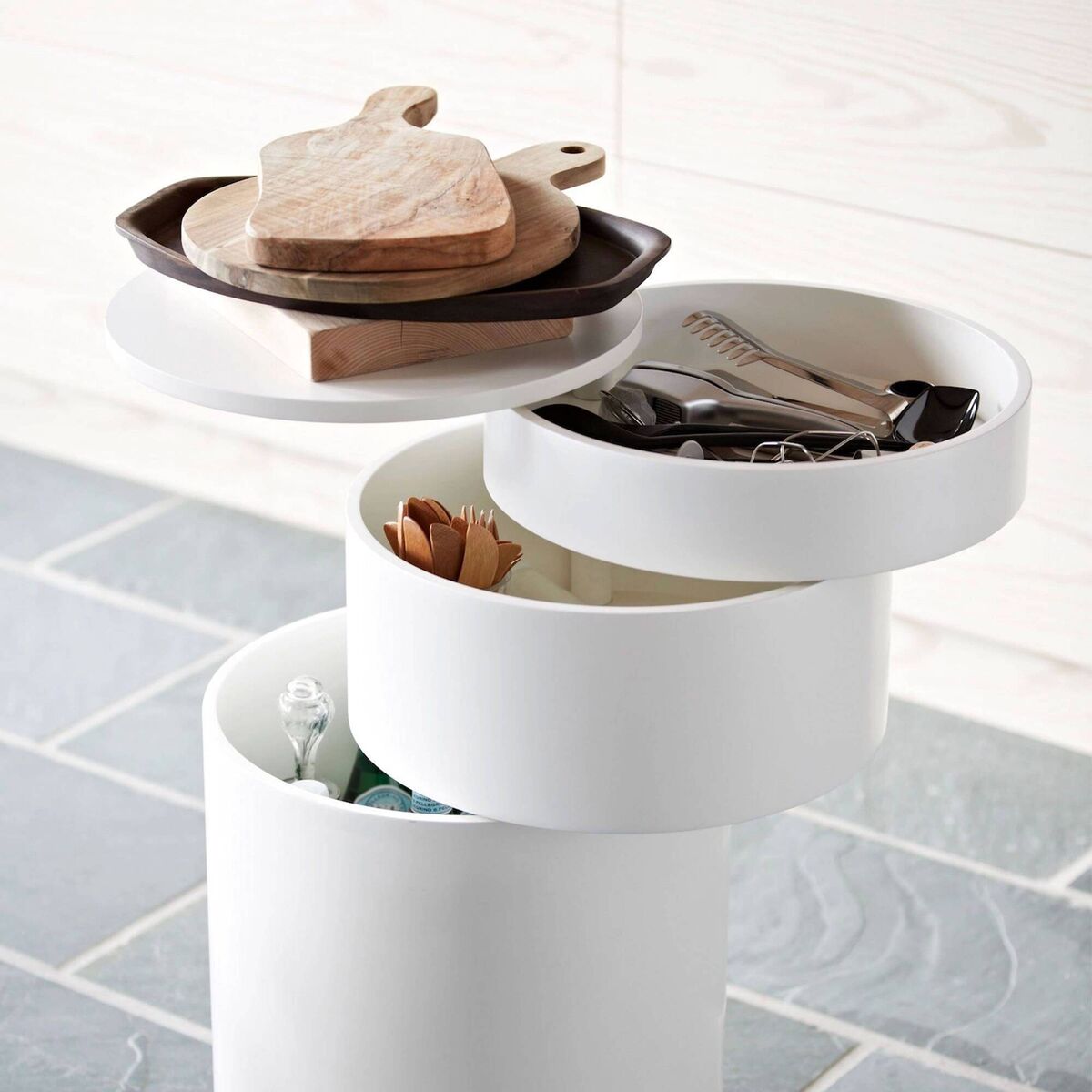 Rumble it out to the patio, or sit it proudly by your home office. The BarBoy from Verpan is an iconic piece of mid-century design from 1963, by the late, great Verner Panton, best known for his lighting. Three round metal drawers/trays swing out fully from the tower to utilise every surface; €1046, smallable.com. Knock-offs abound. For a budget, vintage bedside solution, pick up a Componibili by the Italian house of Kartell, from €145, c.1949, various suppliers.
