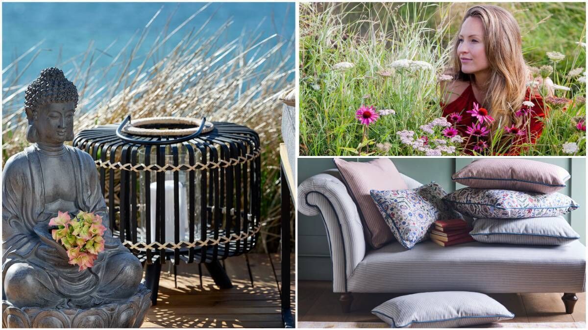 Jysk Entita lantern, left, garden designer Leonie Cornelius, top right, and below right, the Joules Hambledon chaise longue for Dfs.