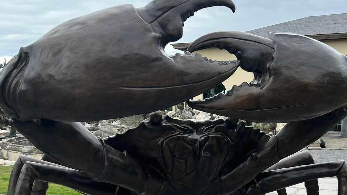 An oversized bronze of a crab at Victor Mee.