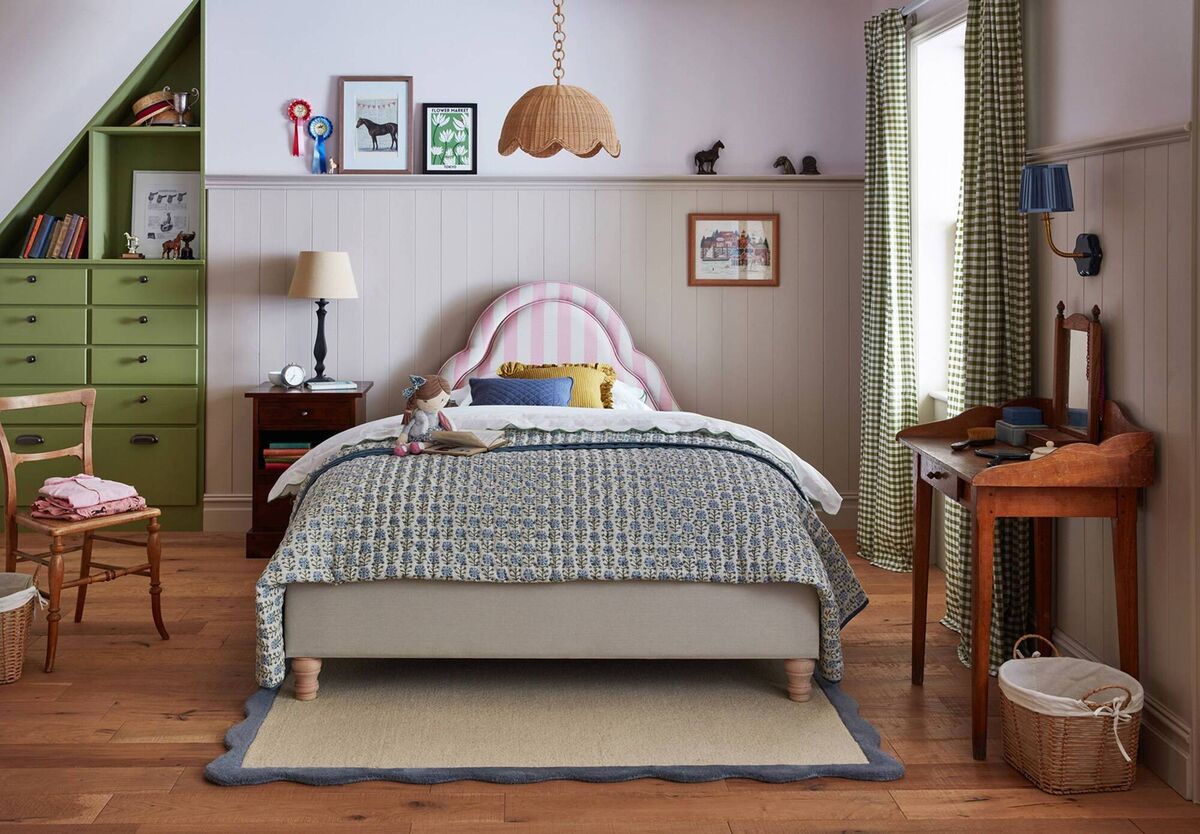 Sleep easy in the Joules Dorothy small double bed frame in this cute pink stripe.Â