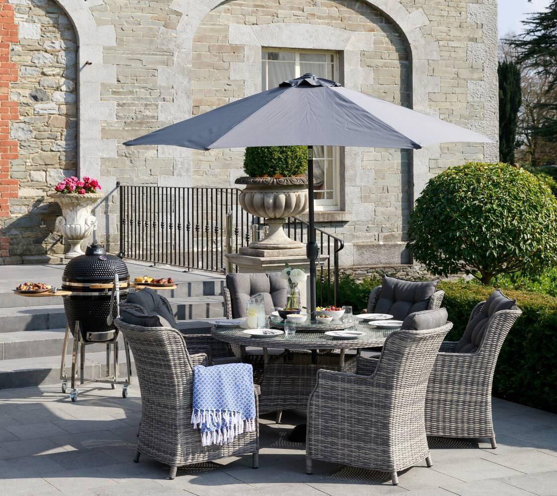 But bring it on anyway, come rain or shine — we're ready for a season of fizzing afternoon al-fresco fun, bountiful barbecues and drinks at dusk. And if your garden needs a bit of a zhuzh-up, Woodie's has the ultimate in outdoor room investments for the hosts with the most: The Arabella six-seater rattan patio set €1999.99, oozes luxury.