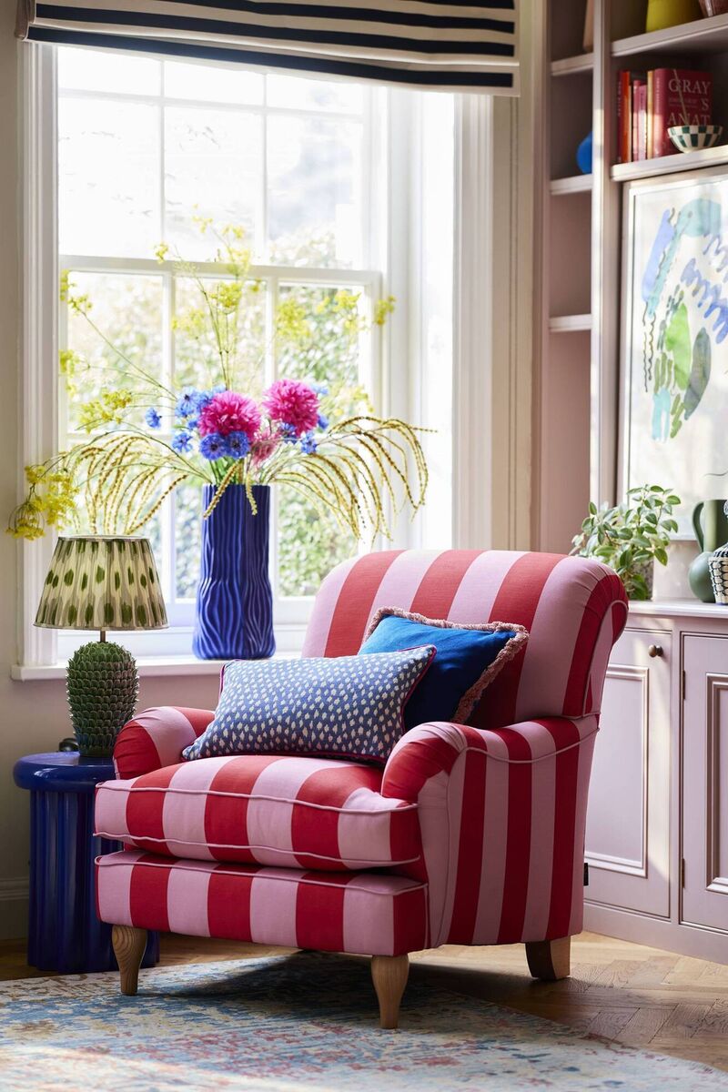 But for those of us who want maximalism and technicolour experimentation in our living spaces — Sophie’s sofas, armchairs, footstools and cushions inject a dose of what she describes as “joyful but considered eccentricity”. The Pashley accent chair here is €1,429, and cushions are €55 each.