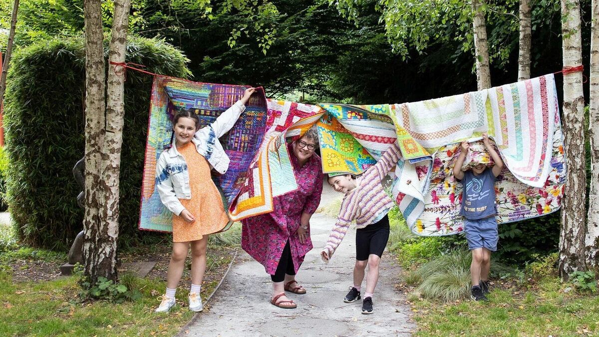 Quilt artist Mary Palmer of Marimu Design, current chairperson of Cork Craft & Design, with Este Holme Roberts (10), Tuilelaith Holme Roberts (8) and Felix Holme Roberts (6). Picture: Clare Keogh