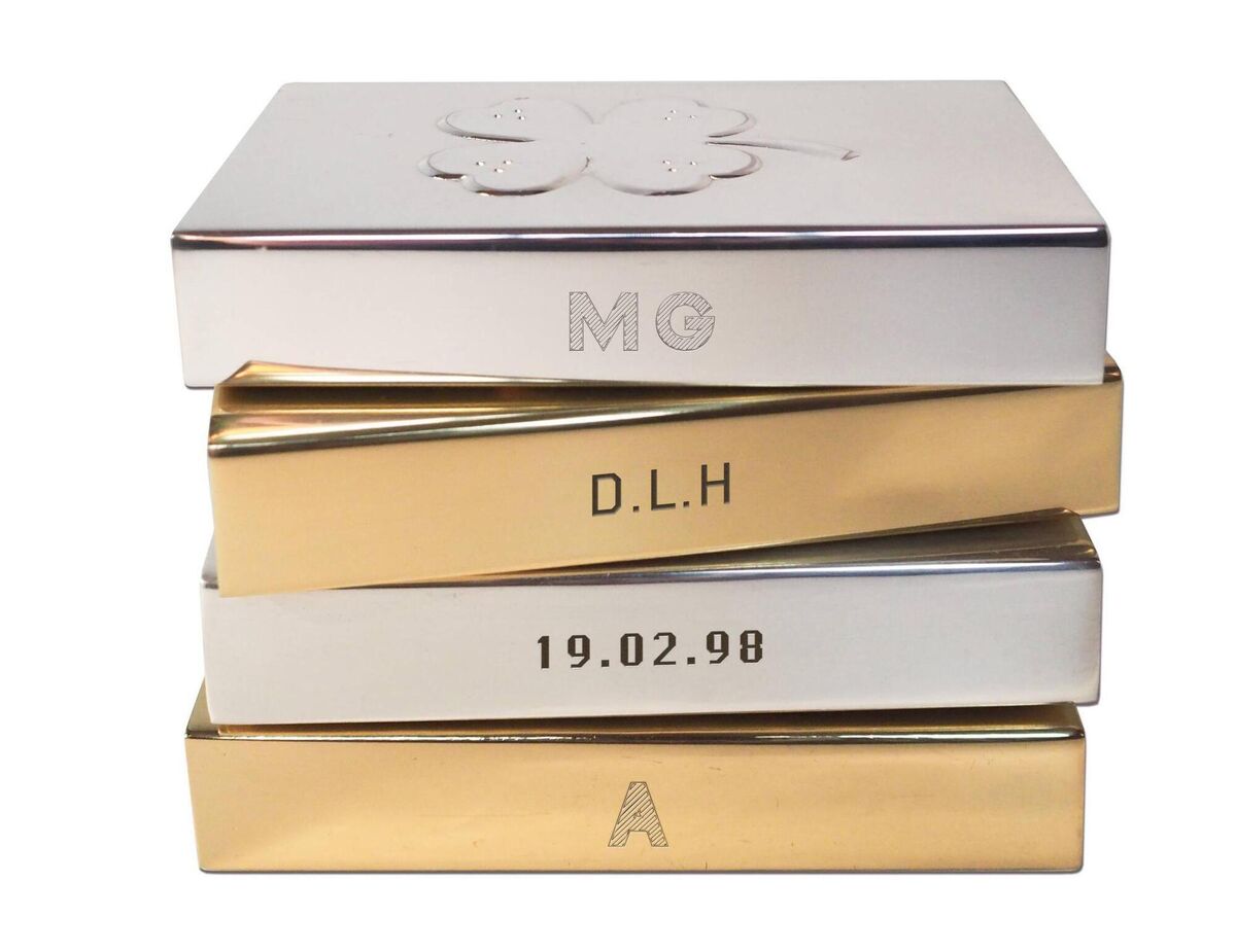 Picture the scene. You’ve scheduled an evening with your partner. The kids are fast asleep. Romance is looming, then you whip out some safety matches to light a candle. Avoid any mood-killer moments with this stack of Matilda Goad & Co engraved brass matchbox sleeves, €62.95 each. How impressed will your significant other be with a personalised clover embossed case or a serpent cast in gilt?