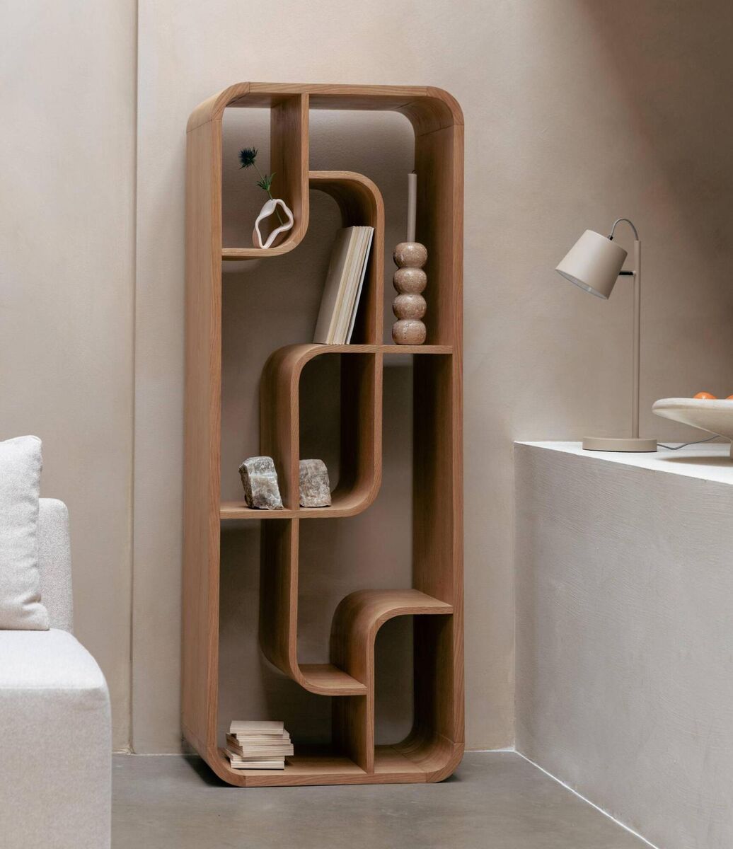 Against a neutral furniture palette, this is a real opportunity to infuse some personality into your room. Skulls, sculpture, ceramics, this shelving unit is a bona fide real conversation starter. Plus, when turned on its axis, it serves as a TV unit or a low console. A power move worthy of any of the Succession siblings.