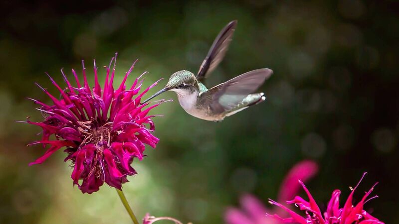 A hummingbird in flight feeding on bee balm or monarda. The herb that we all know as bergamot has the botanical name monarda and is native to North America. File picturesÂ