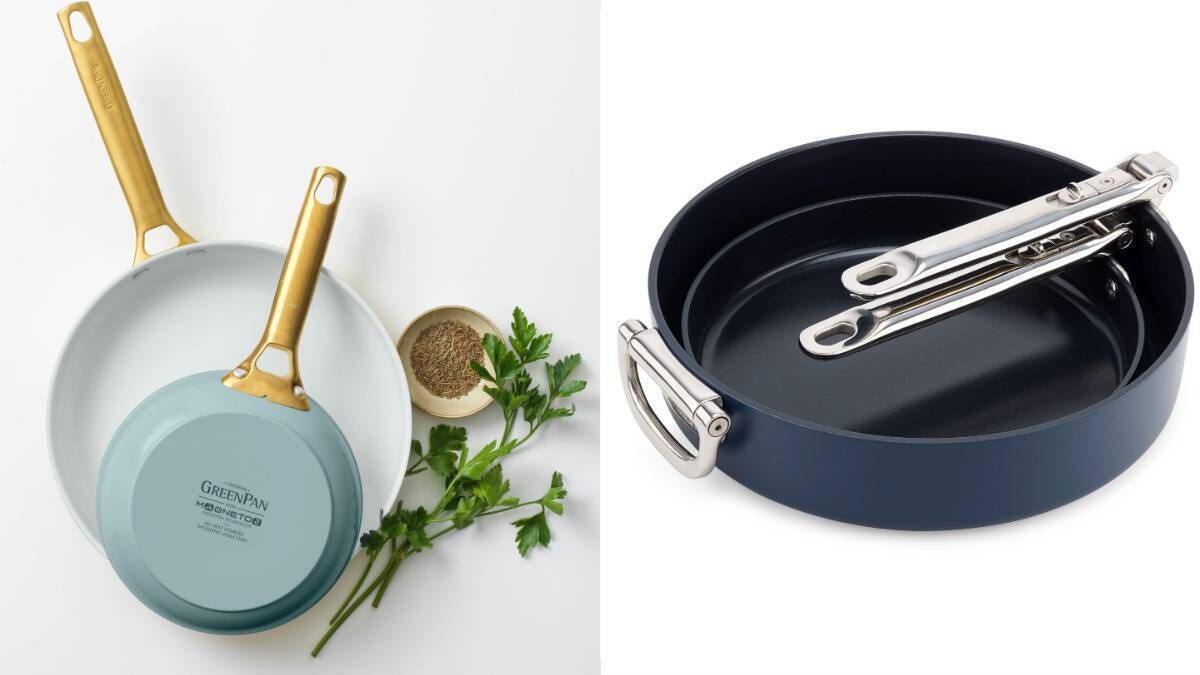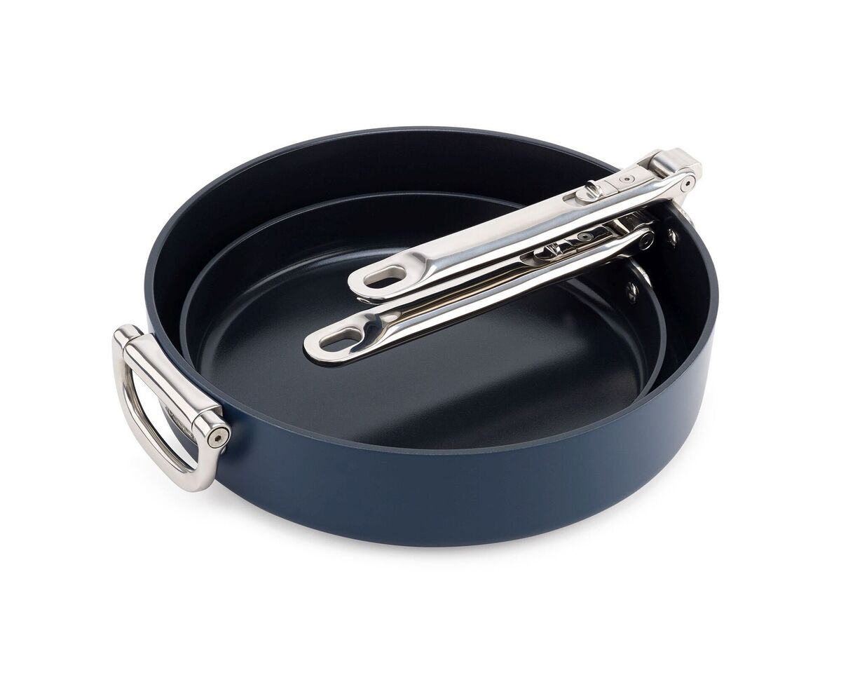 The GreenPan Padova Reserve and the Joseph Joseph Space two-piece pan set.