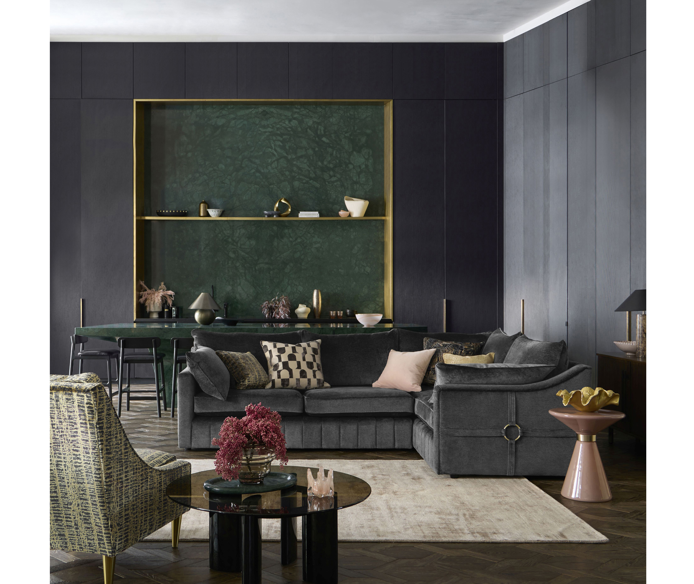 Olivier, named after stage and screen star Laurence Olivier, is all about ‘plush, generous seating that oozes pure luxury’. And Showstopper features ‘rich jewel tones, dramatic silhouettes and vibrant prints’, with scatter cushions and even a fluffy pink footstool to accessorise the look.