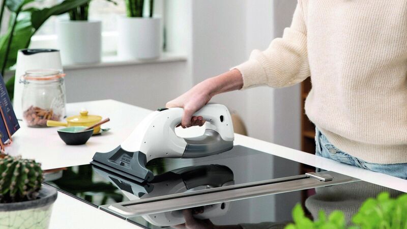 My first and favourite hack is the induction hob — in fact, any flat glass hob will benefit here. Ensure the blade of the vacuum is immaculate before starting, as a single bit of grit could cause a scratch on your pricey Bora. When you clean the hob, be it a typical flush model or a new generation invisible hob, the window vac will shine up the surface in a quick swat. Obviously, when using the vacuum, the hob should be completely cold (there’s a rubber edge on the vacuum) and all debris, muck and oil should already be cleaned off, leaving just the rinse water. Once you’ve started using the vacuum on the hob, you’ll notice the surrounding counter is also left streak-free.