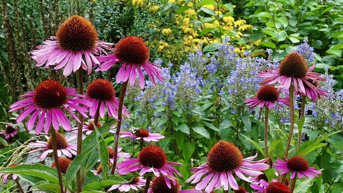 The single-flowered Echinacea purpurea, Agastache, and Nepeta are not just beautiful but also beneficial to pollinators. Picture: iStock