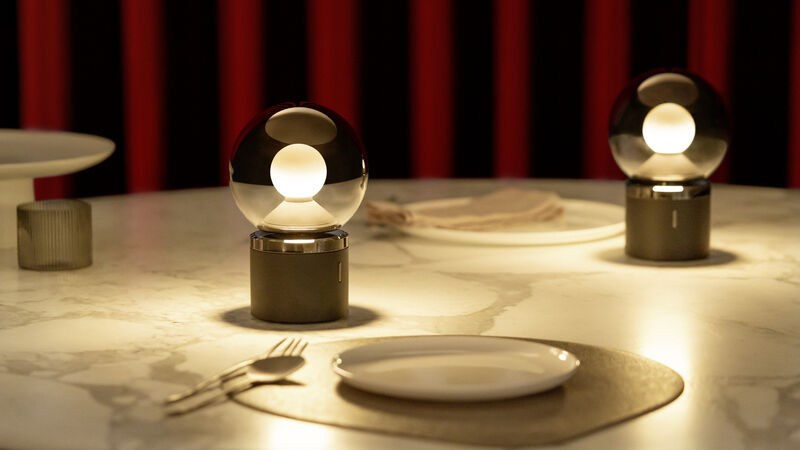 Occhio Luna Pura wireless lamps: With wireless, Bluetooth, and touch-operational functionality, the lighting can be curated to a glow that instantly changes the mood and atmosphere of a room.