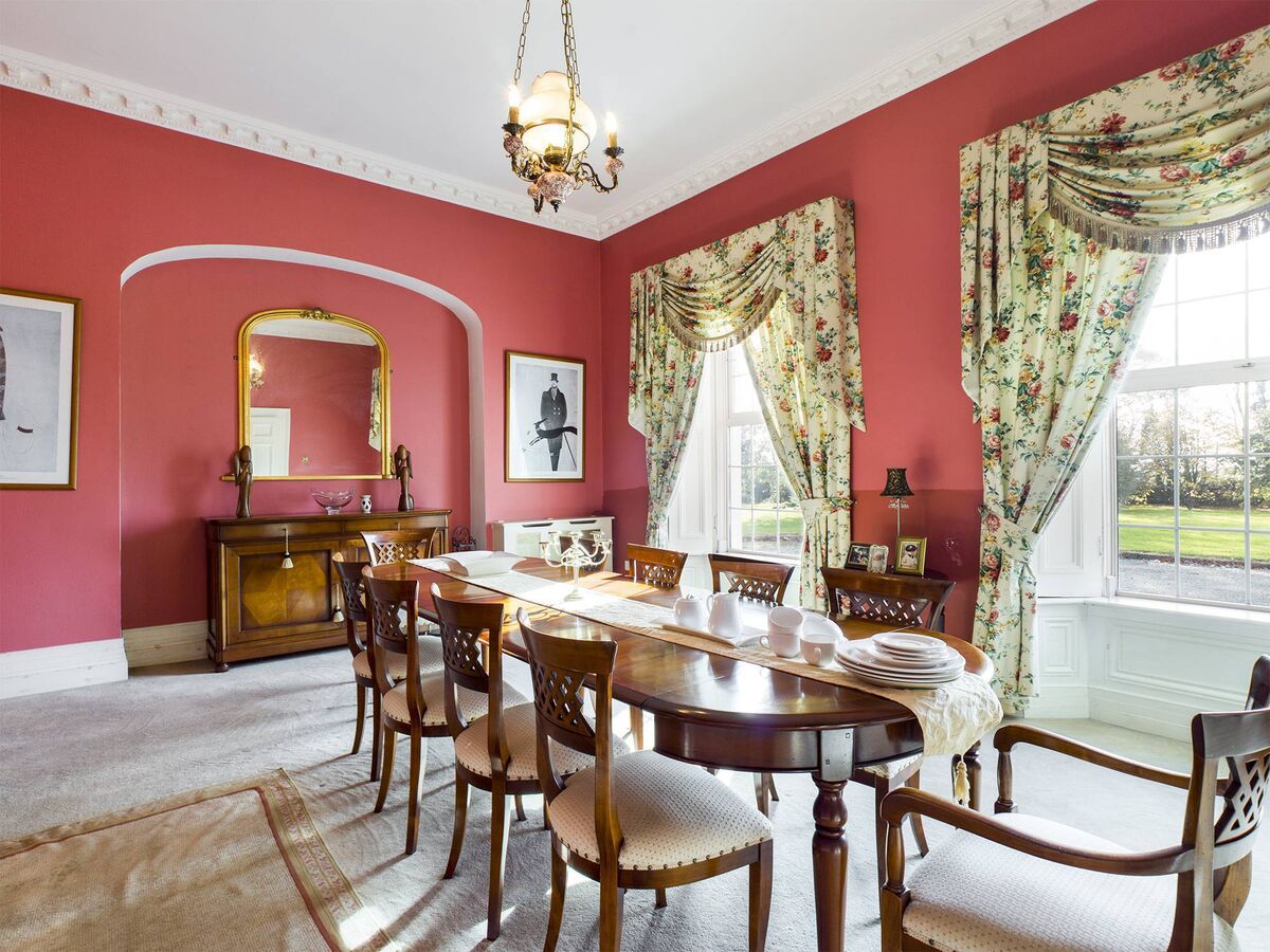 The six-bed, five-bathroom, 347 sq m detached home in Leamaneigh More, Newmarket-on-Fergus, Co Clare, consists of the original Georgian house at the front — hall, dining room, living room, all with high ceilings and original doors — while the remaining section was renovated in 2001 with a contemporary look.
