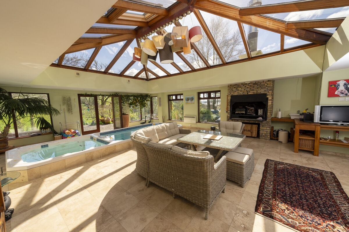 What’s more, there’s a log stove in the pool room in case the temperature dips, with logs housed in an adjoining outdoor alcove, sheltered from the inevitable rain by a perspex roof.