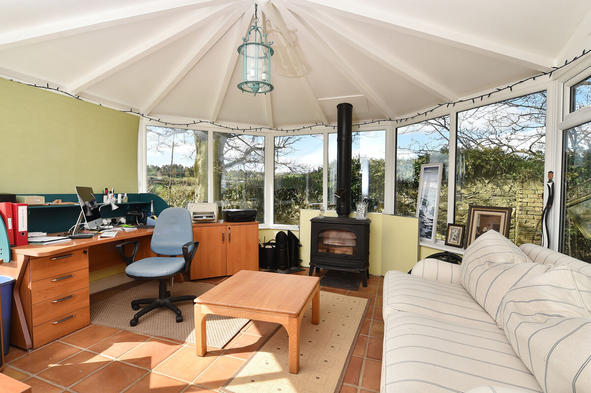 Moreover, plans have been prepared for “double-storeying” the garage, she says. The house is not listed, so changes can be made, Outside, the gardens fan over three levels and are walled on three sides, while a stream forms a natural boundary on the fourth side. There is, literally, a babbling brook at the end of the garden. The house is reached via a long drive over which the owners have a right of way.