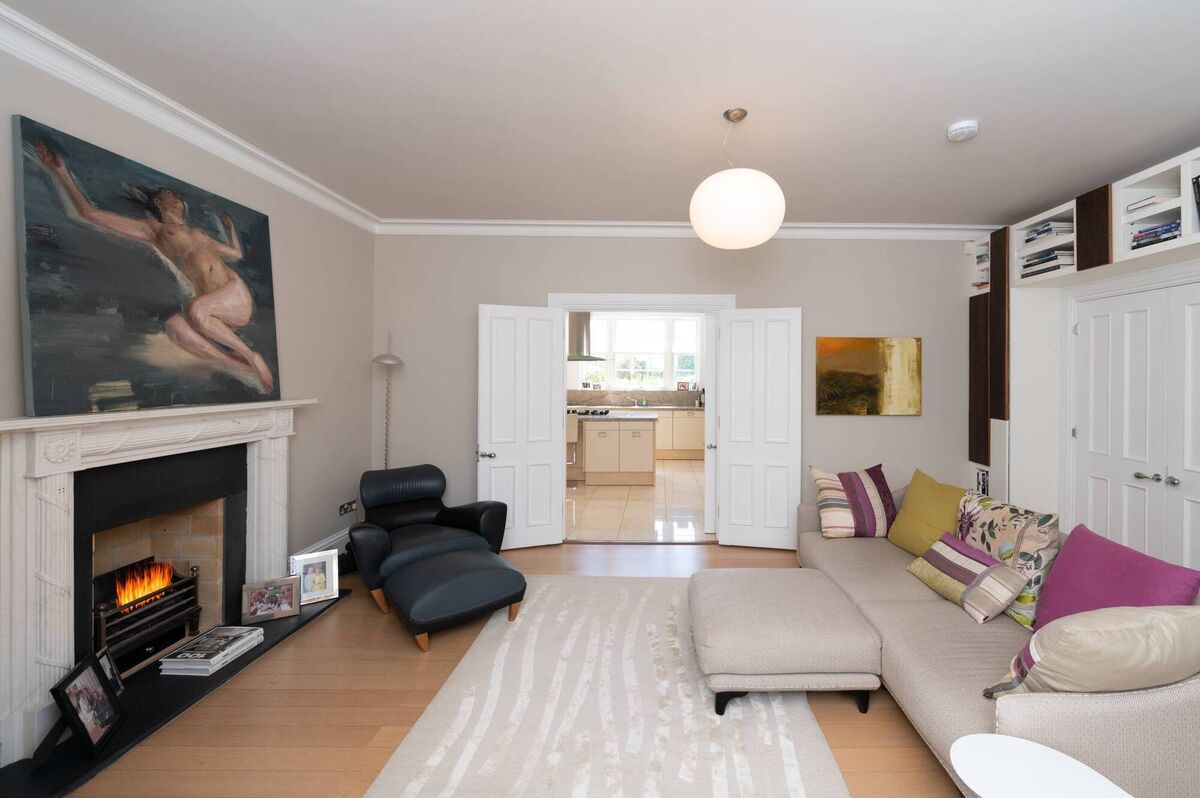 Elsewhere, internally No 13 has a traditional layout of fine living rooms at ground, flowing one to the other via various sets of painted, hardwood double doors across a big hall, while an attached garage is home to a serious-looking amount of gym equipment, much used during the pandemic’s long lockdown months.