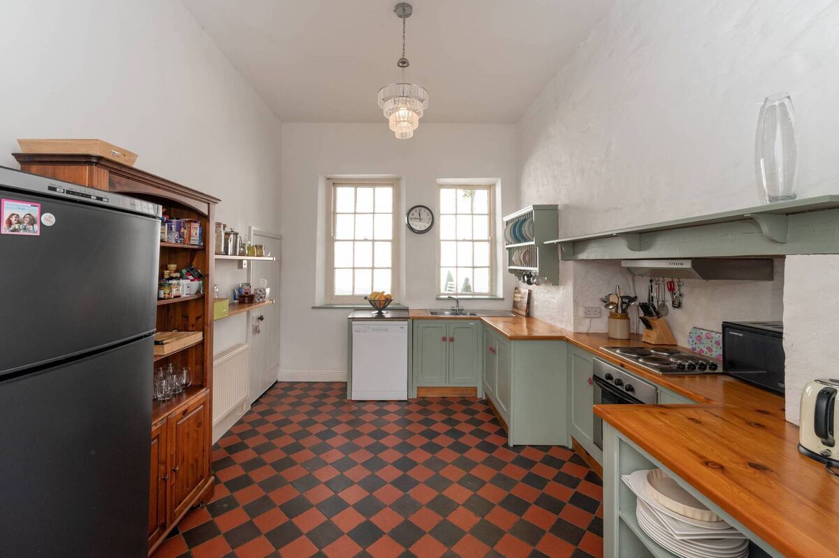 At the back of the hall, there’s a guest WC and on the half landing, a utility and a shower room.