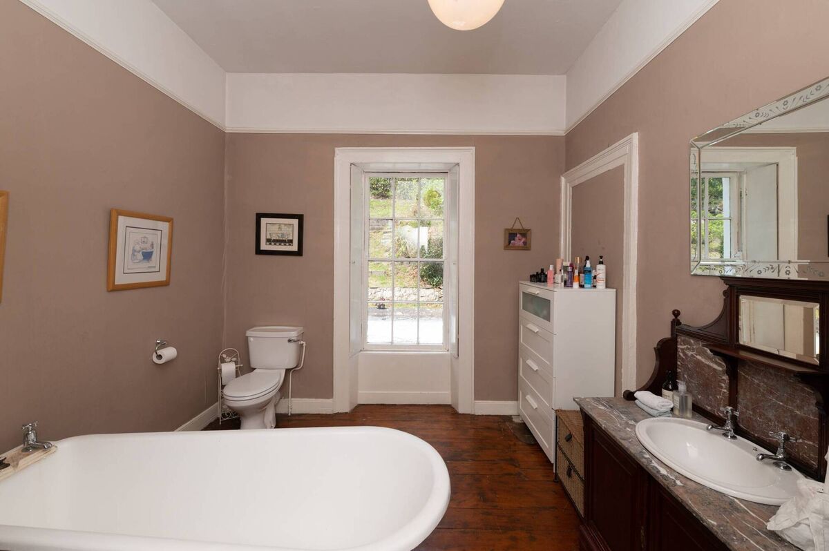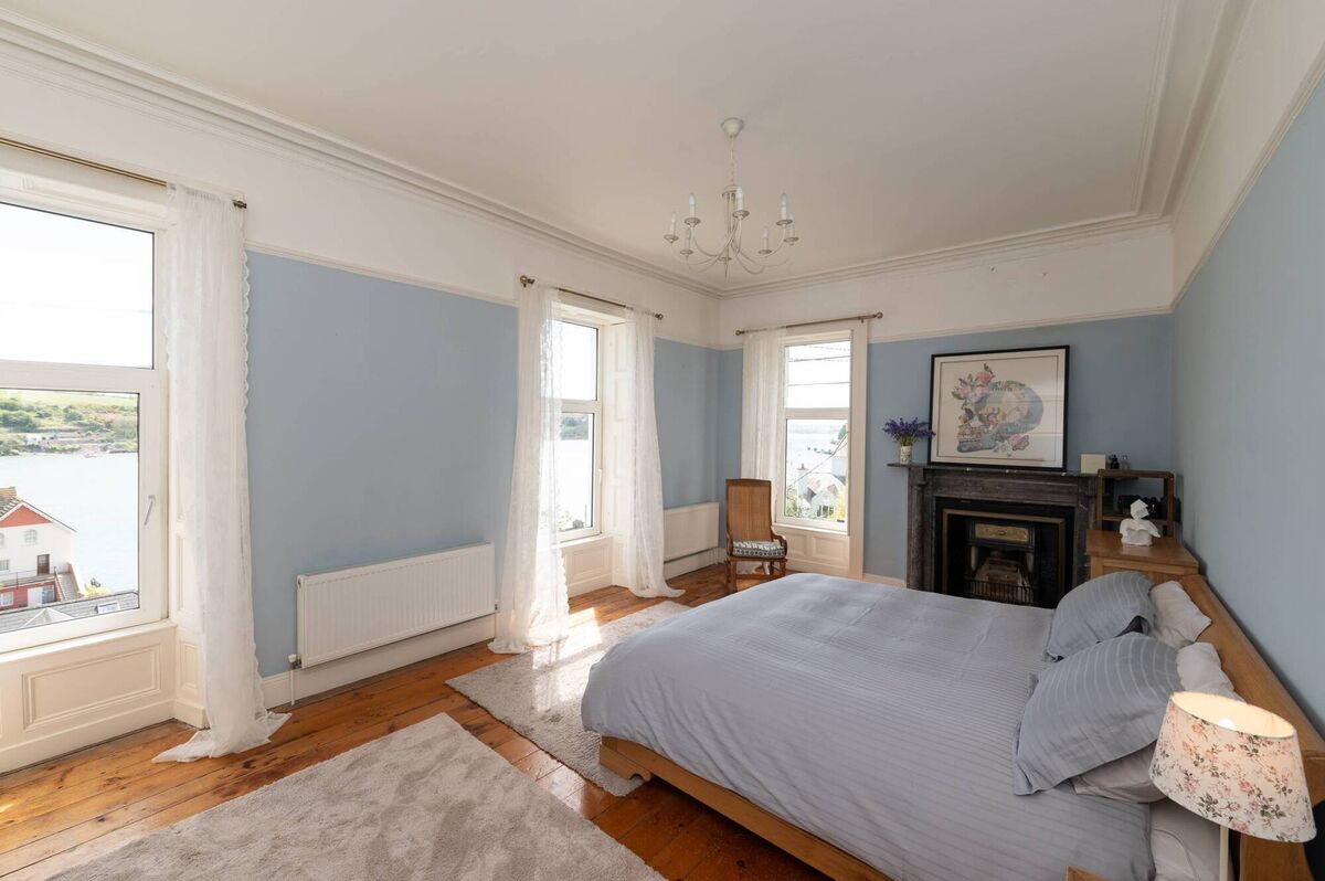 Three of the five bedrooms are on the first floor and the main bedroom is a knockout, with three tall windows to soak in those views — Gail says it would have been the main drawing room in Victorian times. The main bathroom is also on this floor and overhead are two more bedrooms, under the eaves.
