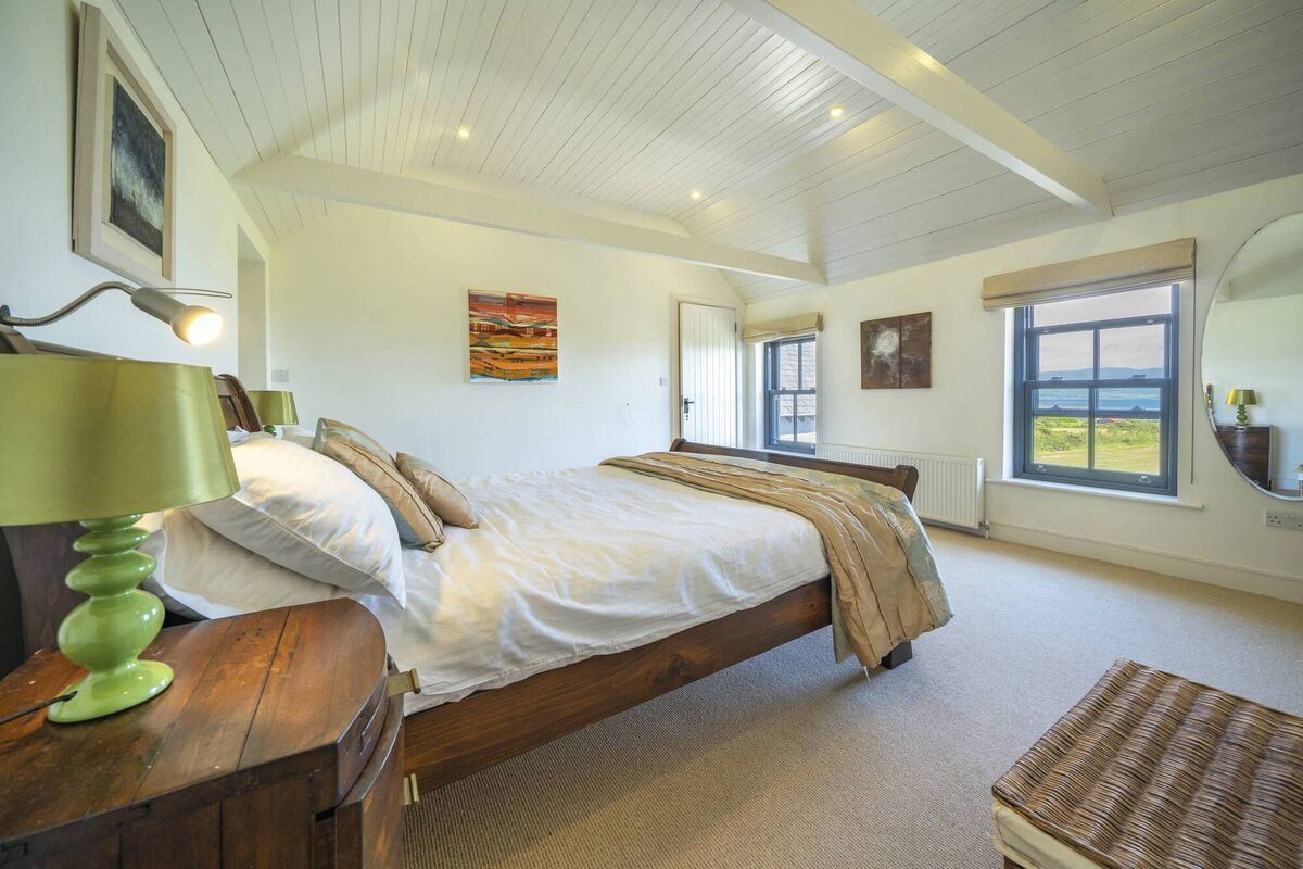 Facing south towards sublime Ballinskelligs Bay and above Reenroe Beach, and looking straight across the bay towards Coomakista and Hogs Head, he determined there and then that it was where he wanted to live. They bought it, and with an eye to the past and to the future, they set about creating a home that not only embraced and amplified the old farmhouse’s charms, but also improved its prospects going forward through the addition of a thoroughly modern wing that sits as comfortably in its superb surroundings as the old farmhouse itself. They also added a small extension on the far side of the farmhouse.