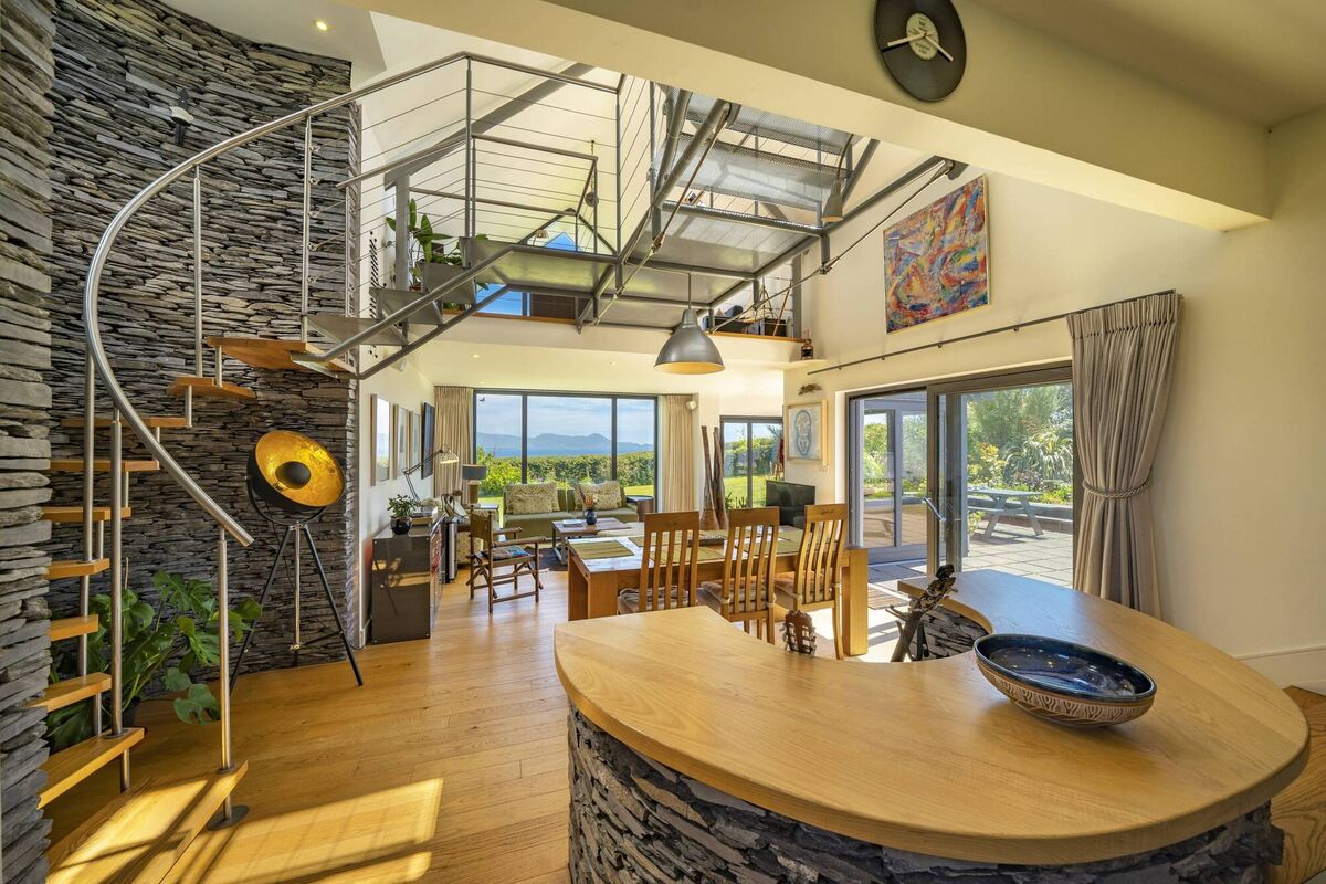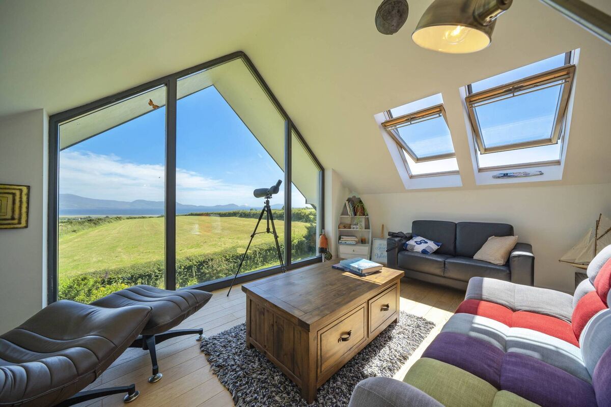 Mr Krueger says interest in the farmhouse is both national and international, with queries coming from the UK, the USA and the Continent, similar to the type of interest generated by a property across the bay in Waterville which he sold for €801,000 last March, having launched at €495,000. Again, it was an architecturally designed home encompassing the old and the new, a bit smaller than this one, on a bigger site, with one or two golf courses nearby.