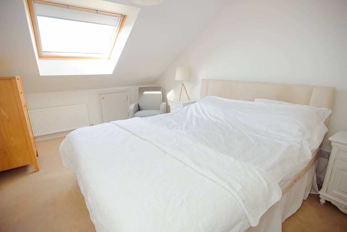Back indoors, there’s a storage area/cloakroom and guest WC downstairs, and overhead, three bedrooms, one of which is ensuite.