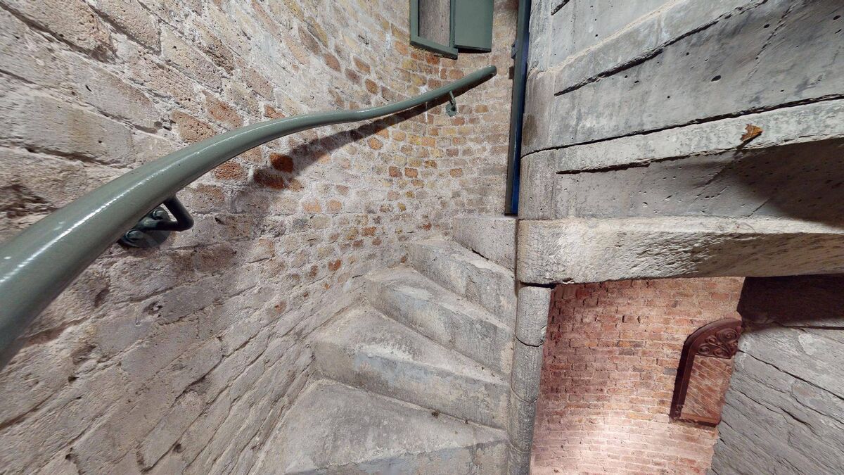 A sort of secret staircase leads from here to the rooftop.