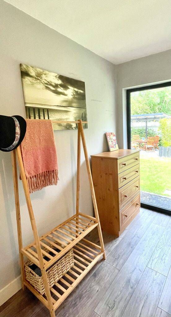In a downstairs bedroom (former kitchen) an old PVC door was replaced with a feature-length window overlooking the garden.