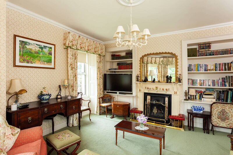 It got reroofed, got new heating and electrics, got period-appropriate furnishings and fittings, chandeliers among the lighting fixtures, many included in this sale. The gardens were fully overhauled, to Brian Cross’ planting plan, with skilled and knowledgeable gardeners keeping it to spec ever since. (The neat and tidy garden store-room has shelves of reference books, and even a vase or two of cut flowers, as entitled to them as any of the formal rooms within the main house.)