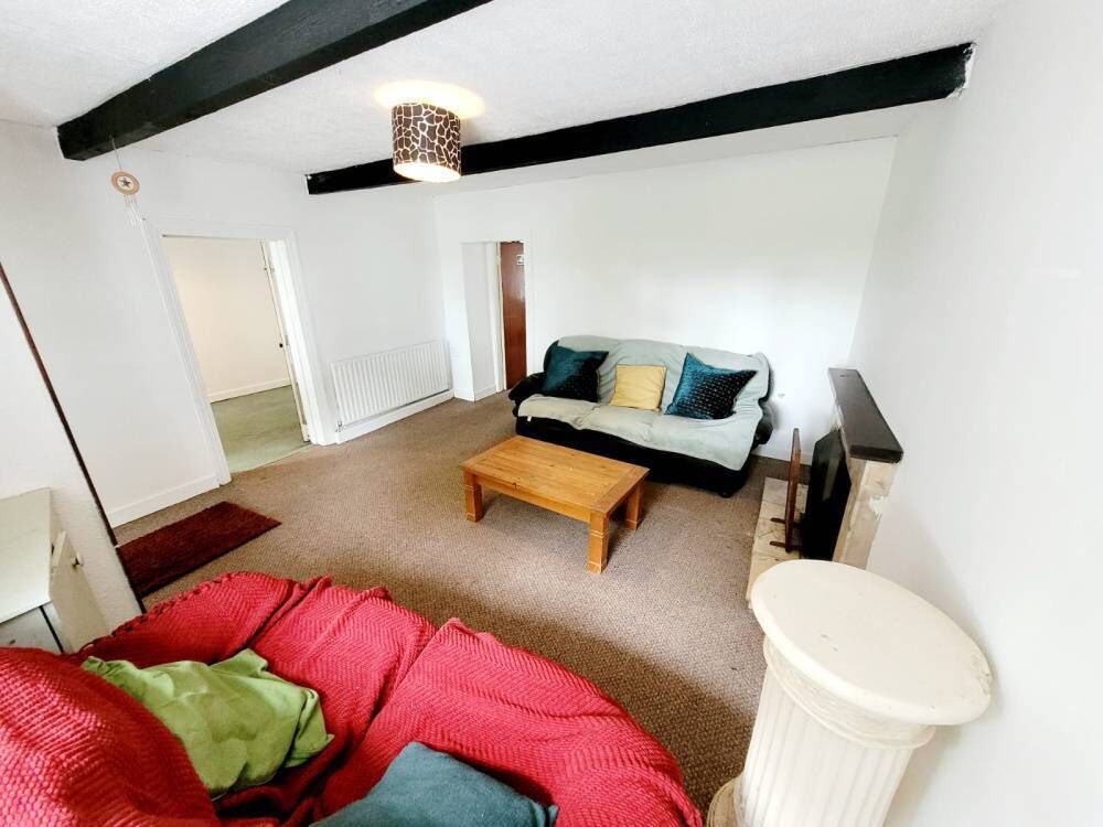 There’s close to 940 sq ft of living space, including a small dining room at the front connected by hatch to a kitchen with fitted units at the rear. There’s also a long room at the front, formerly a sitting room but now a bedroom.