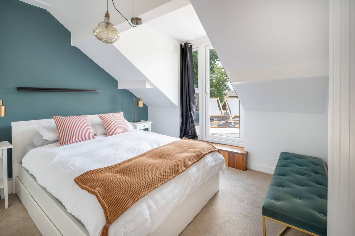 The owners added a bathroom in the ground floor extension and also upgraded the two upstairs bedrooms, fitting the one at the rear with a set of patio doors providing access to the flat roof above the extension.