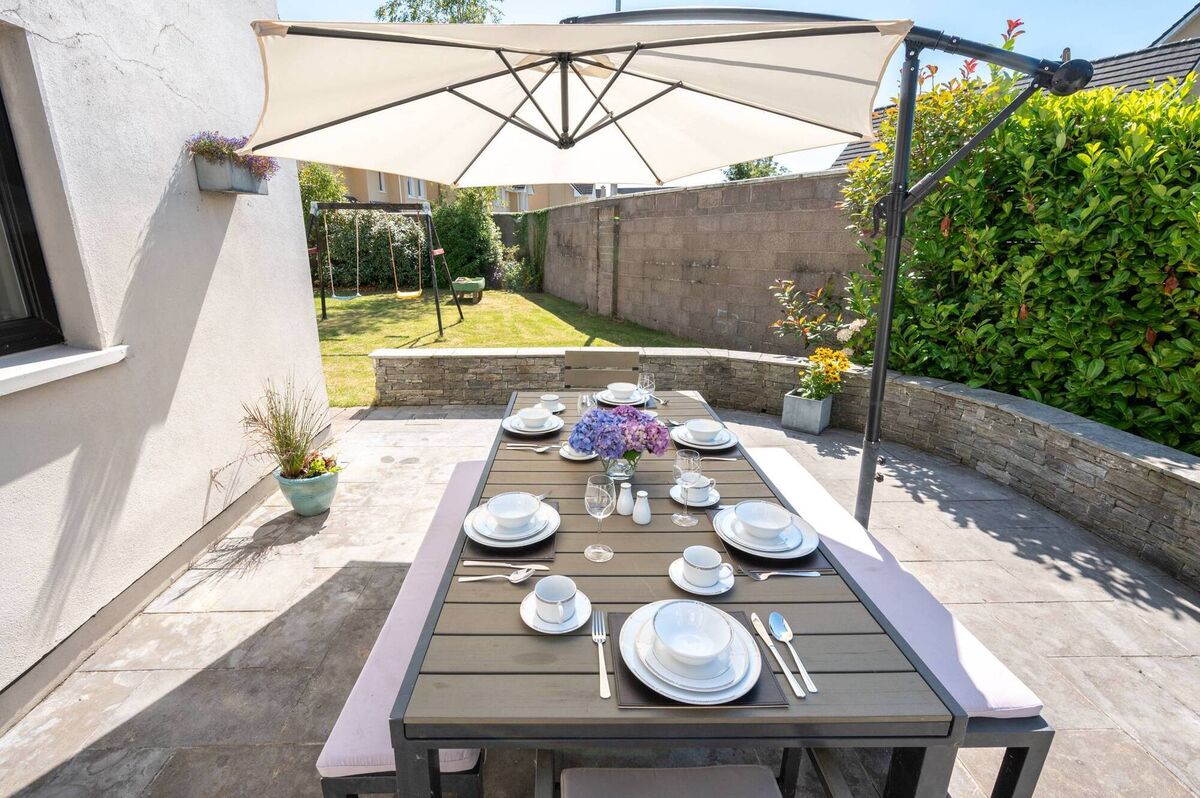 The owners of No 12 say their site, south facing to the rear, is close to one third of an acre and they have the benefit too of being on a corner, which gives them a wider garden arc. As well as accommodating a three-storey, 3,400 sq ft home, there’s room for a walled-in (limestone) patio area, which functions like an outdoor room, the ideal suntrap for entertaining, barbecuing, and family celebrations.